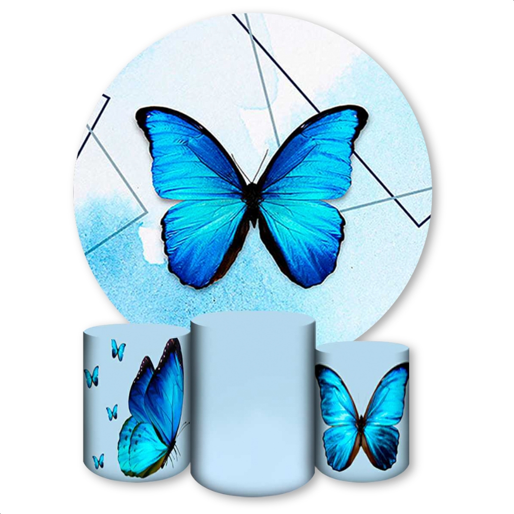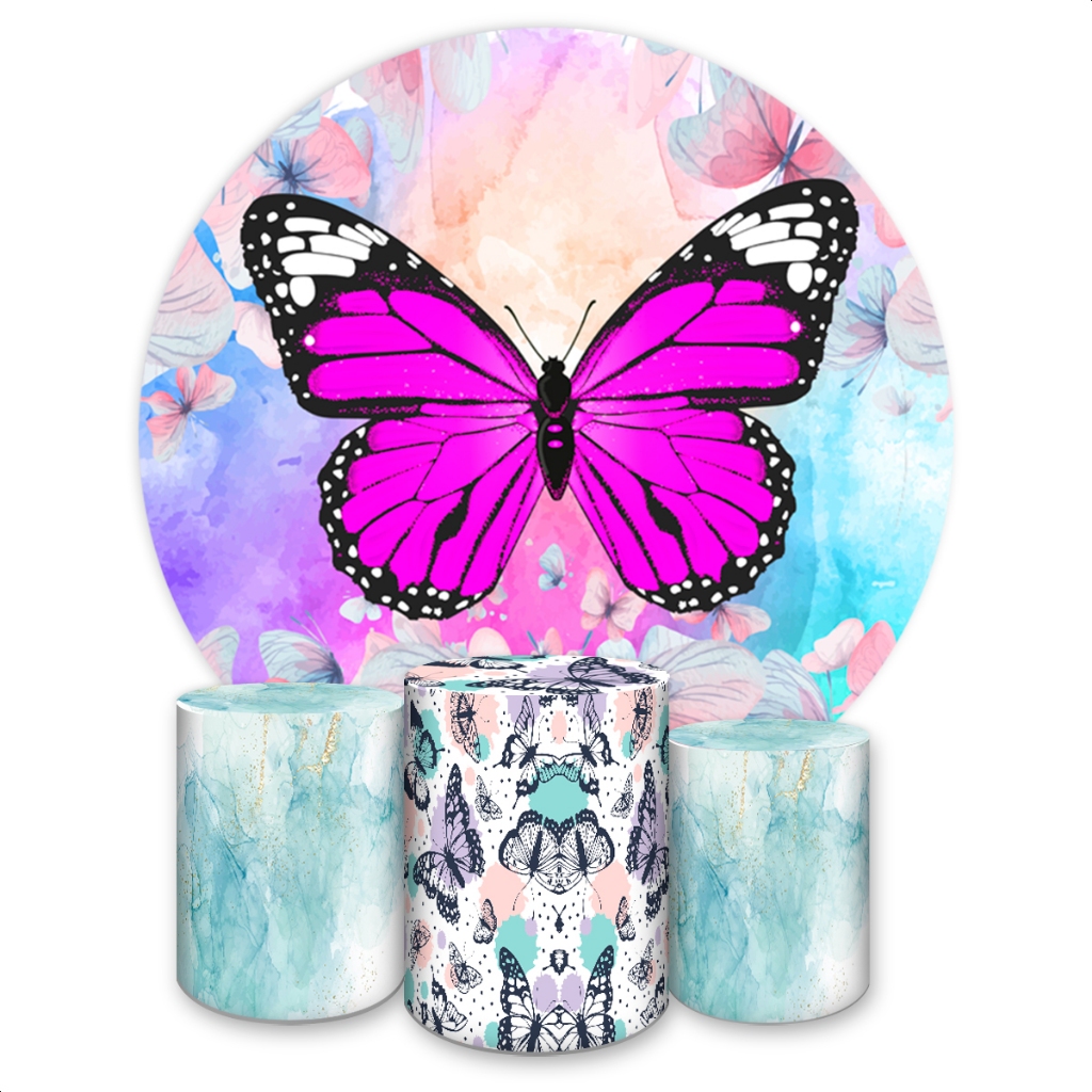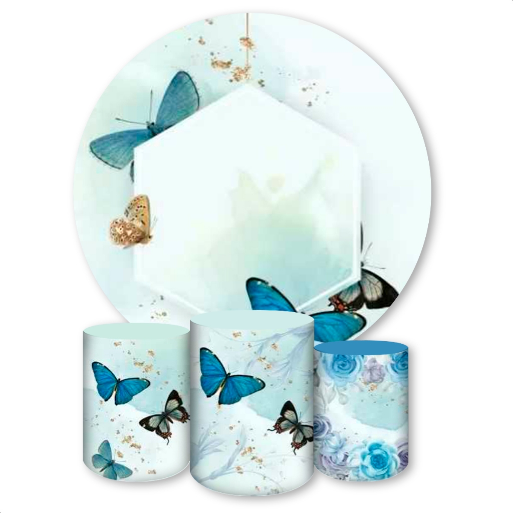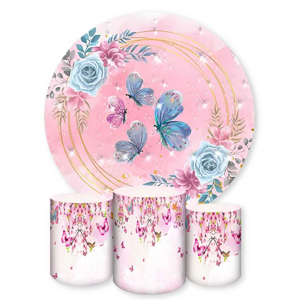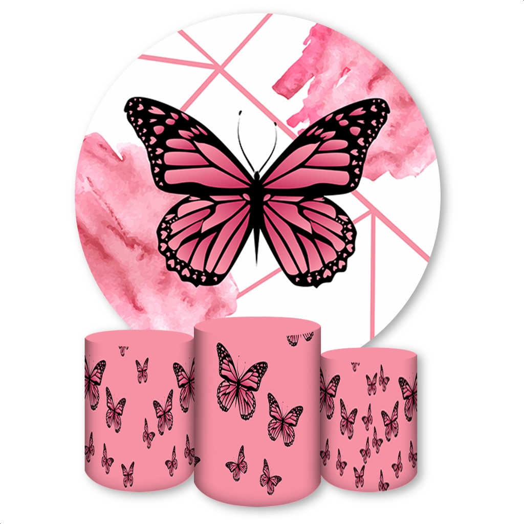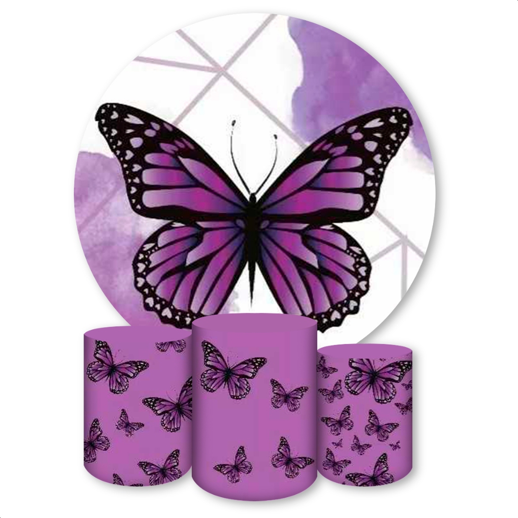 Kit Capa Painel Redondo + Trio Capas de Cilindros Sublimado Tema Borboletas