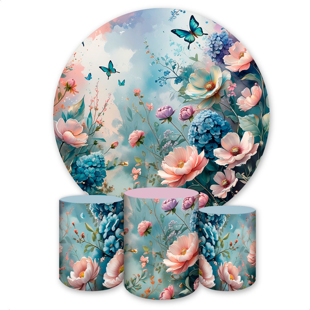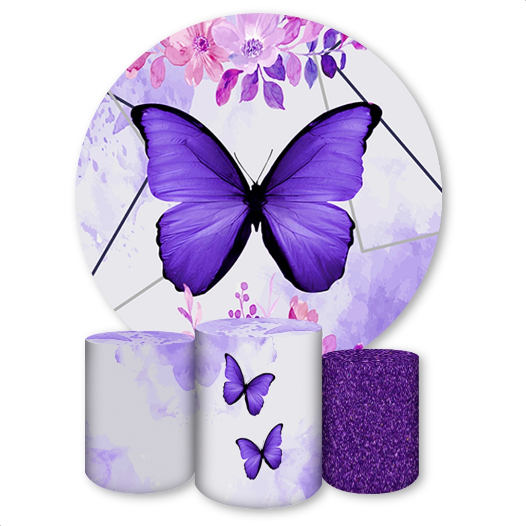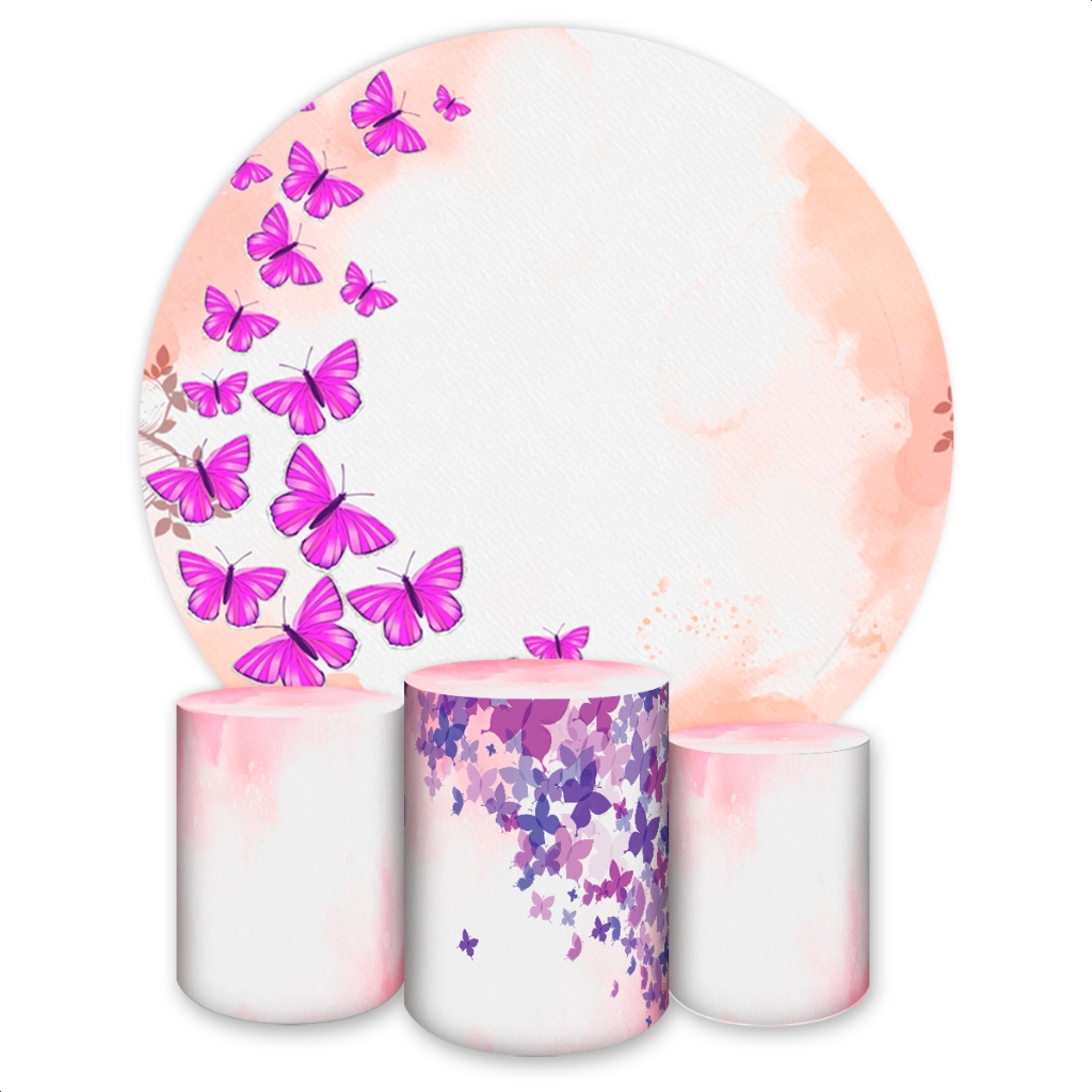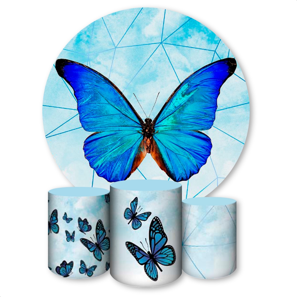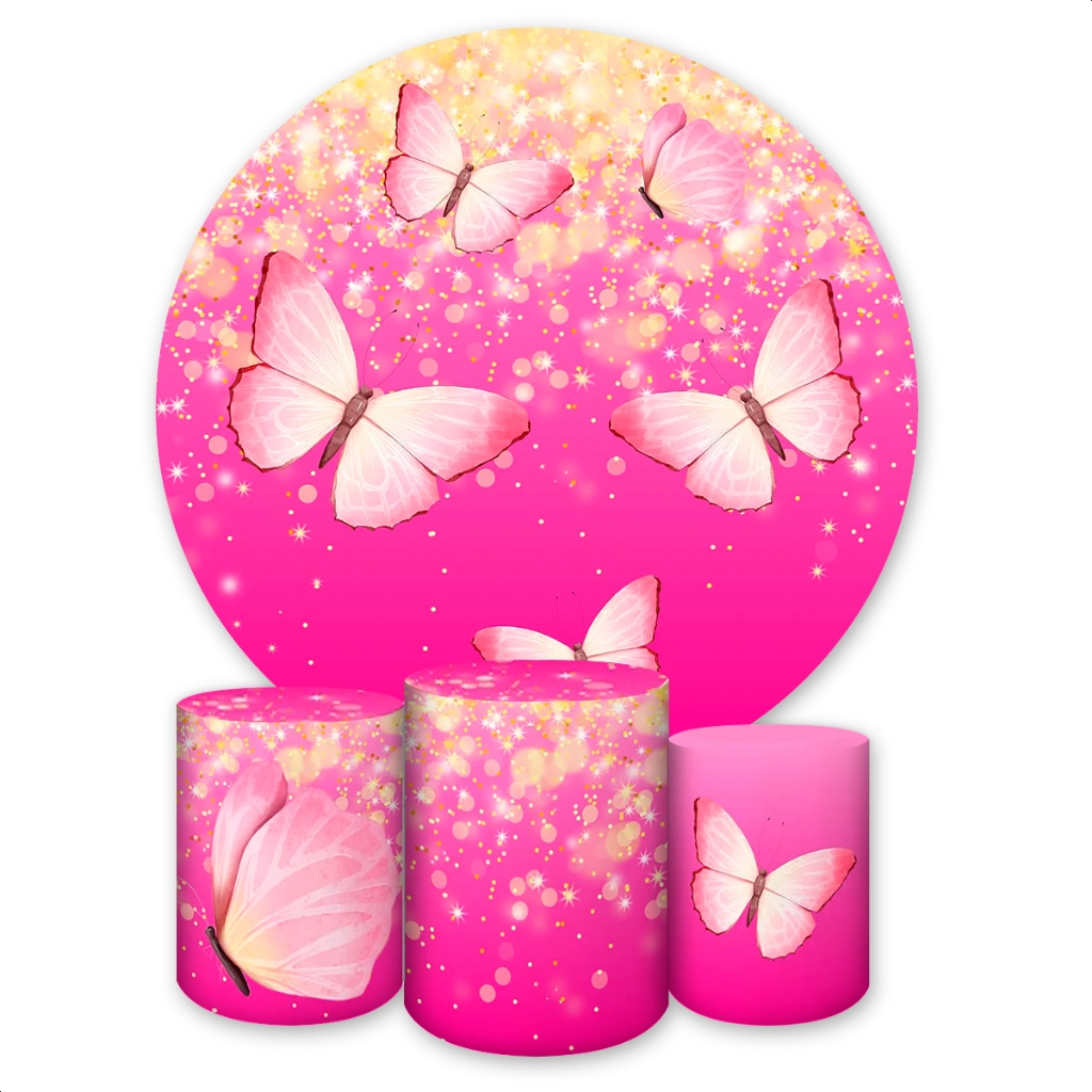Kit Capa Painel Redondo + Trio Capas de Cilindros Sublimado Tema Borboletas