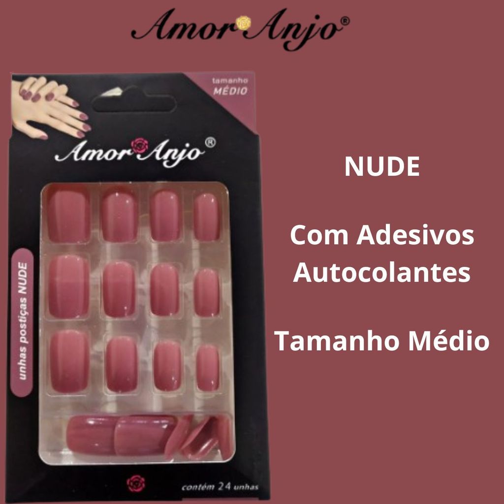 Unhas Postiças Adesivos Autocolantes Nude 24Un - Amor & Anjo