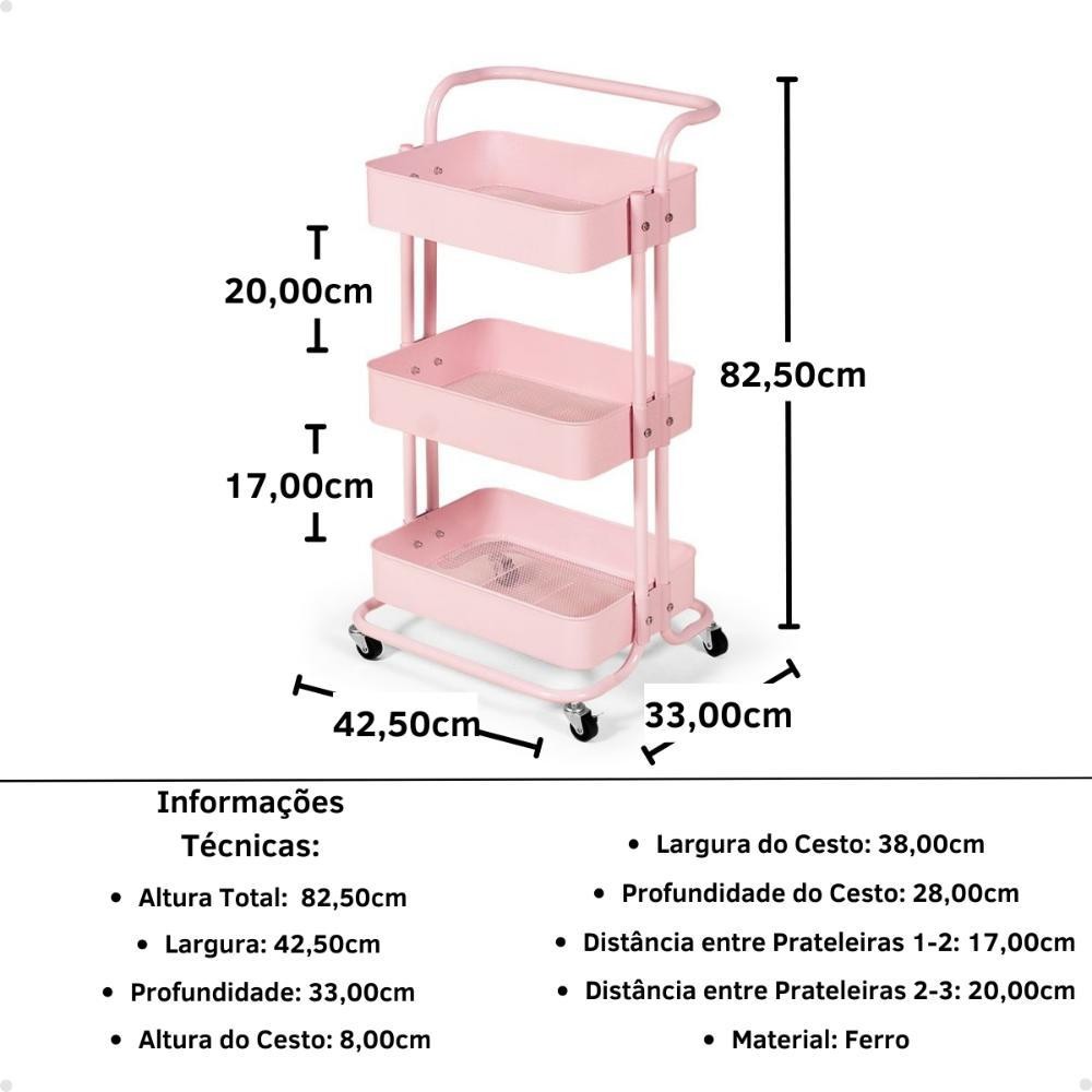 Carrinho Multiuso Organizador 3 Prateleiras em Ferro