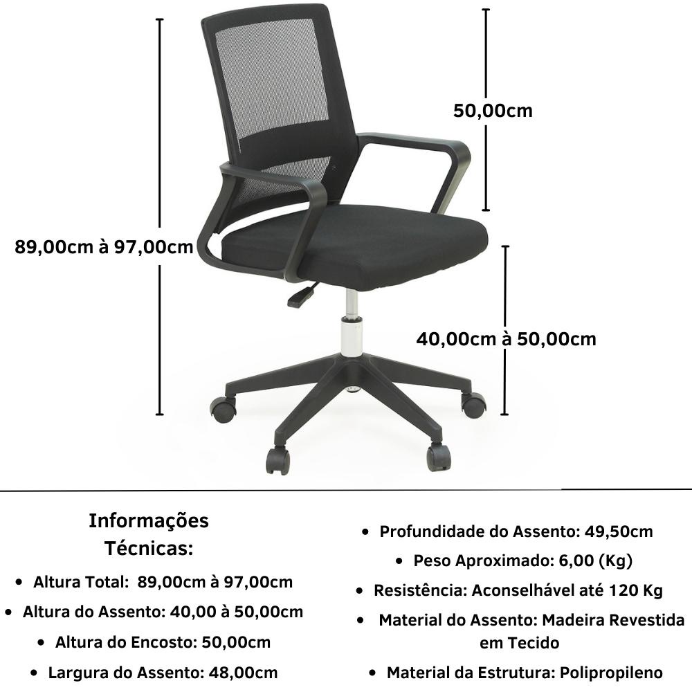 Cadeira de Escritório Premium Giratória com Regulagem de Altura - Preto