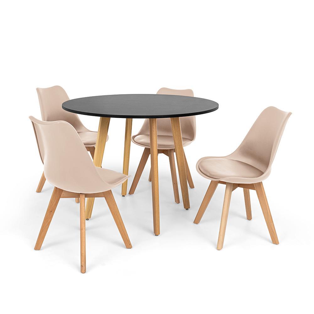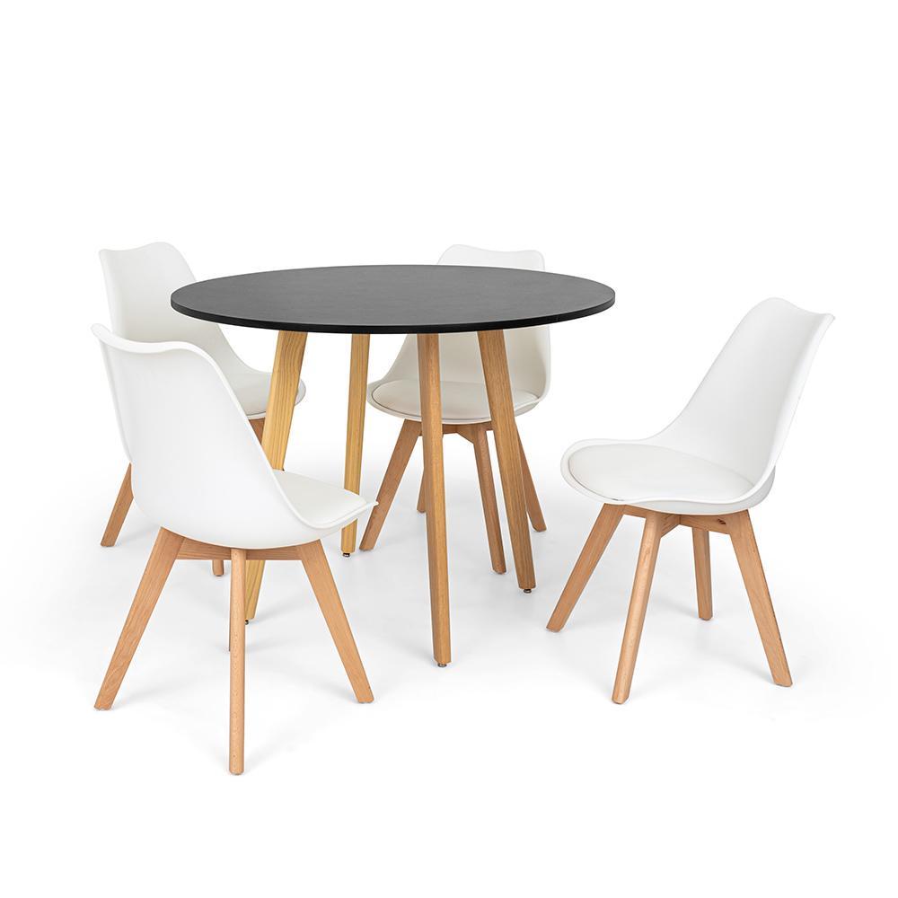 Conjunto Mesa de Jantar Laura 100cm Preta com 4 Cadeiras Eames Wood Leda