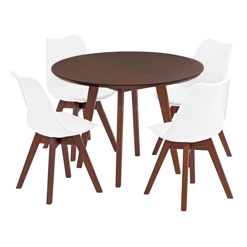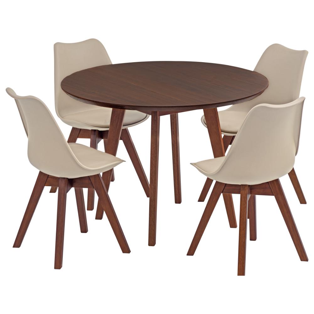 Conjunto Mesa de Jantar Redonda Vértice 105cm Nozes com 4 Cadeiras Leda em Madeira Maciça