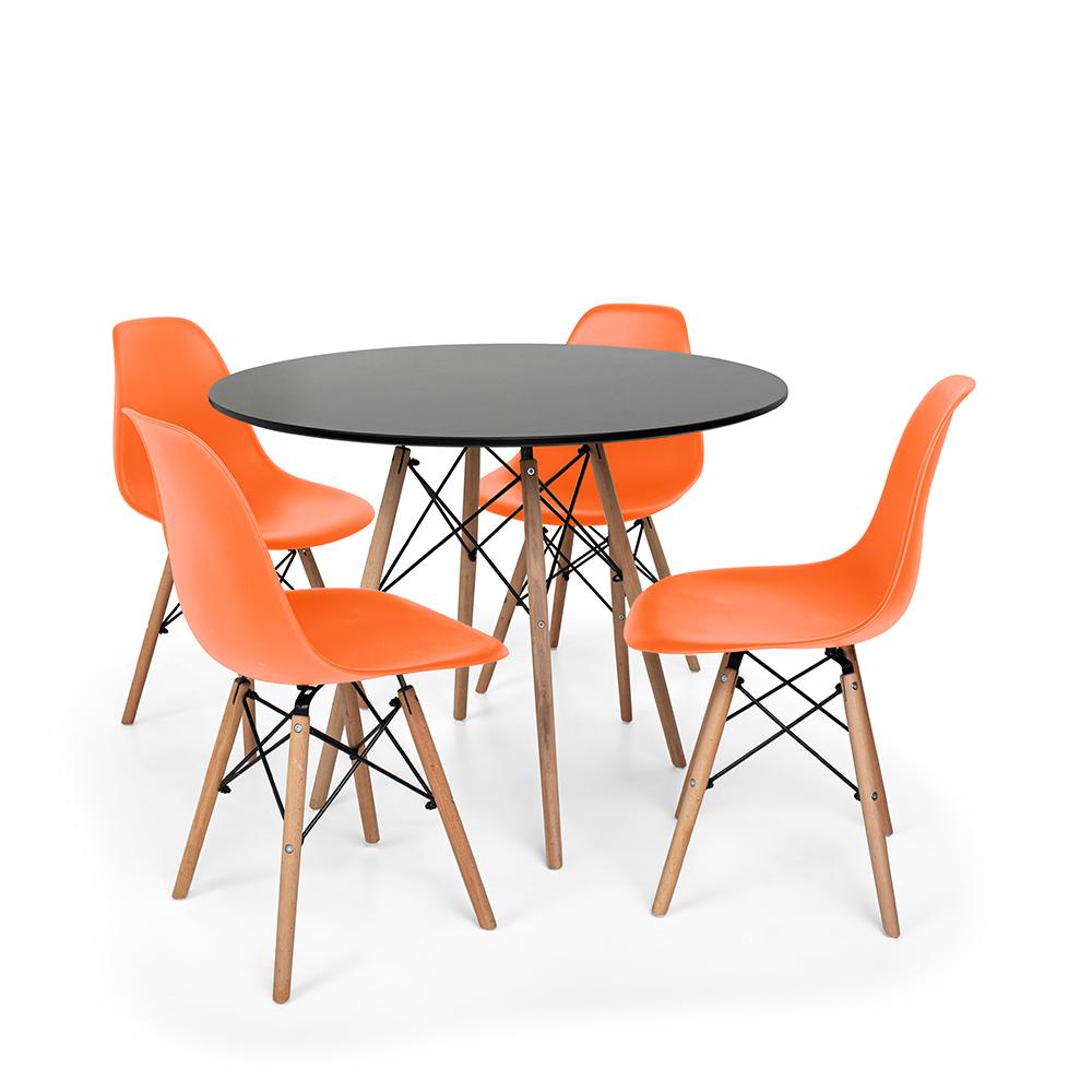 kit Mesa Jantar Eiffel 90cm Preta + 4 Cadeiras Charles Eames