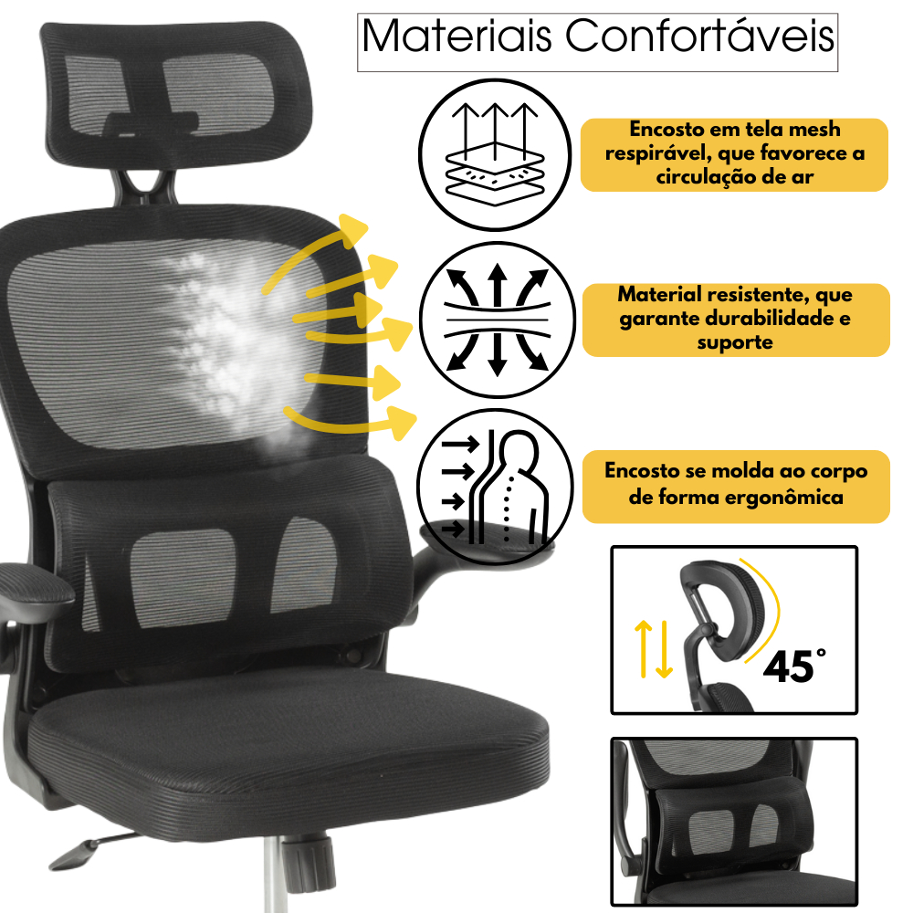 Cadeira de Escritório Giratória Executiva Atenas com Regulagem de Altura