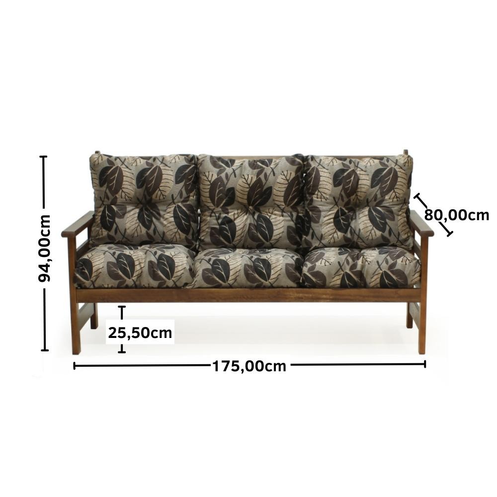 Conjunto Sofá Havaí 3 Lugares + 2 Poltronas de Madeira com Almofadas Confortáveis