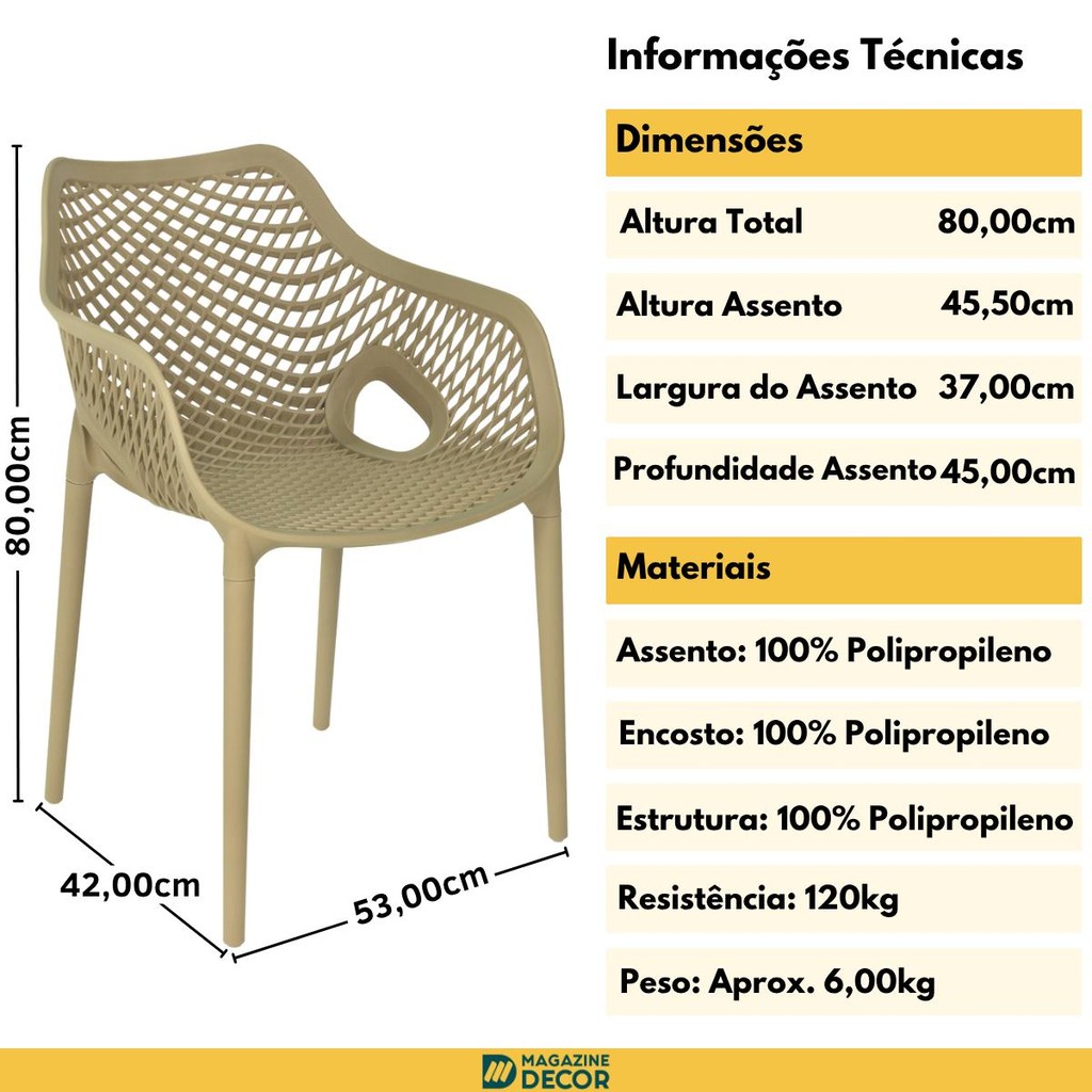 Cadeira de Jantar Design Suits com Braço Empilhável em Polipropileno