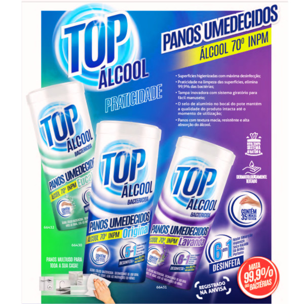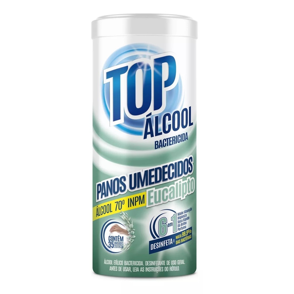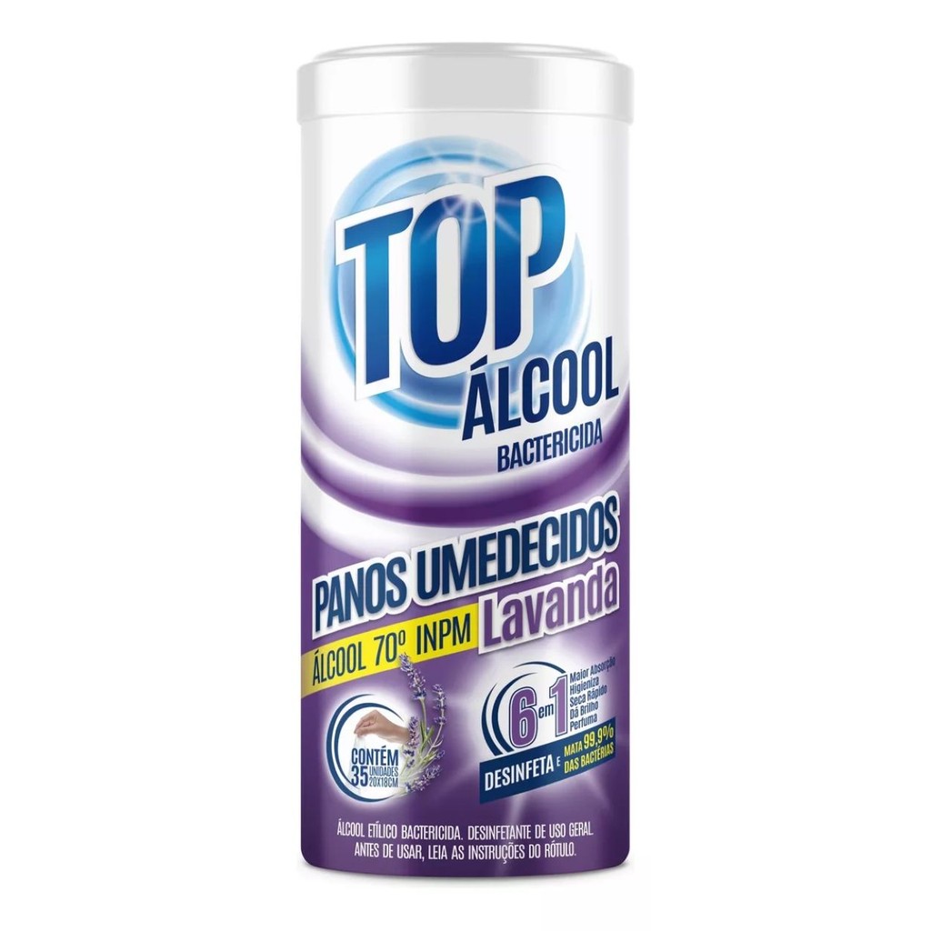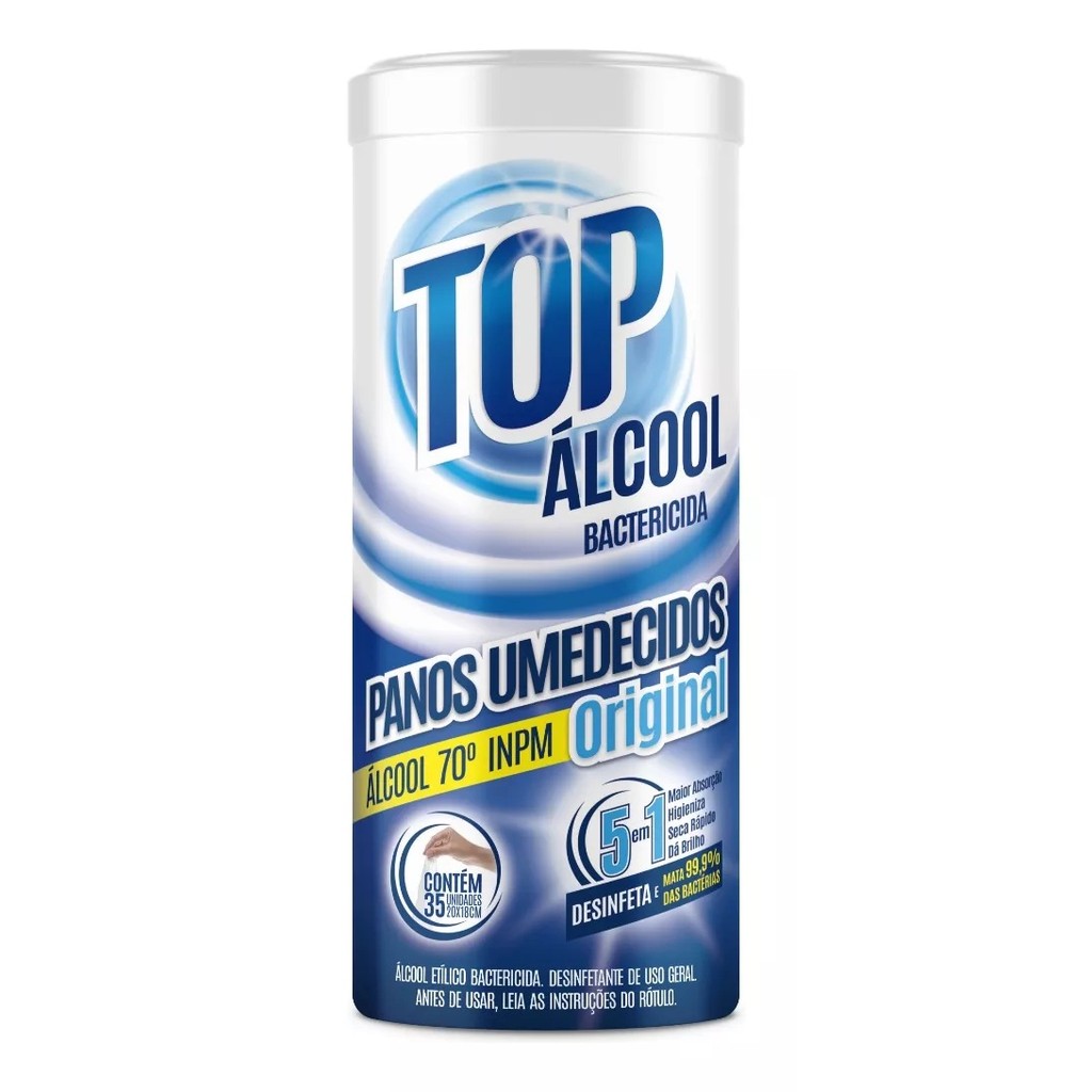 Panos Umedecidos Álcool Bactericida 70 Limpeza Em Geral Pote Com 35 Unidades