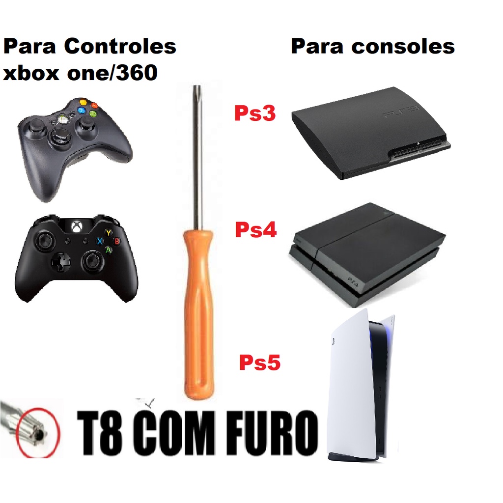 Chave Torx T8 ou T10 Com Furo Abre Playstation PS3 PS4 PS5 Xbox Xbox One Controles