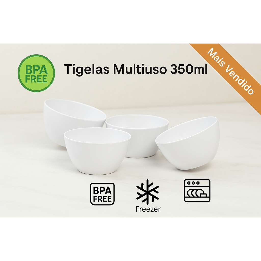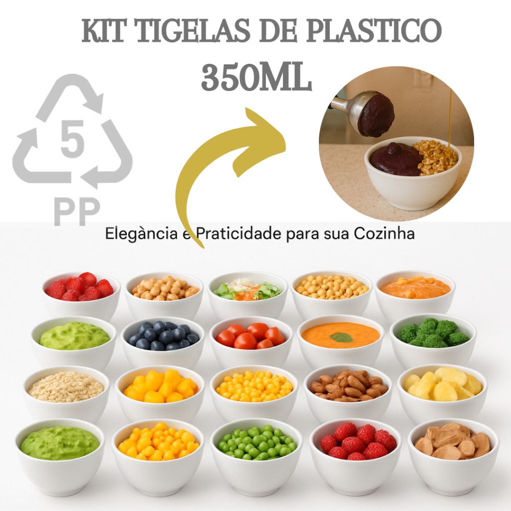 Kit de Tigelas Potes Plástico Bowl Sobremesa Sorvete Açai 350ml na cor Branca Livre de BPA