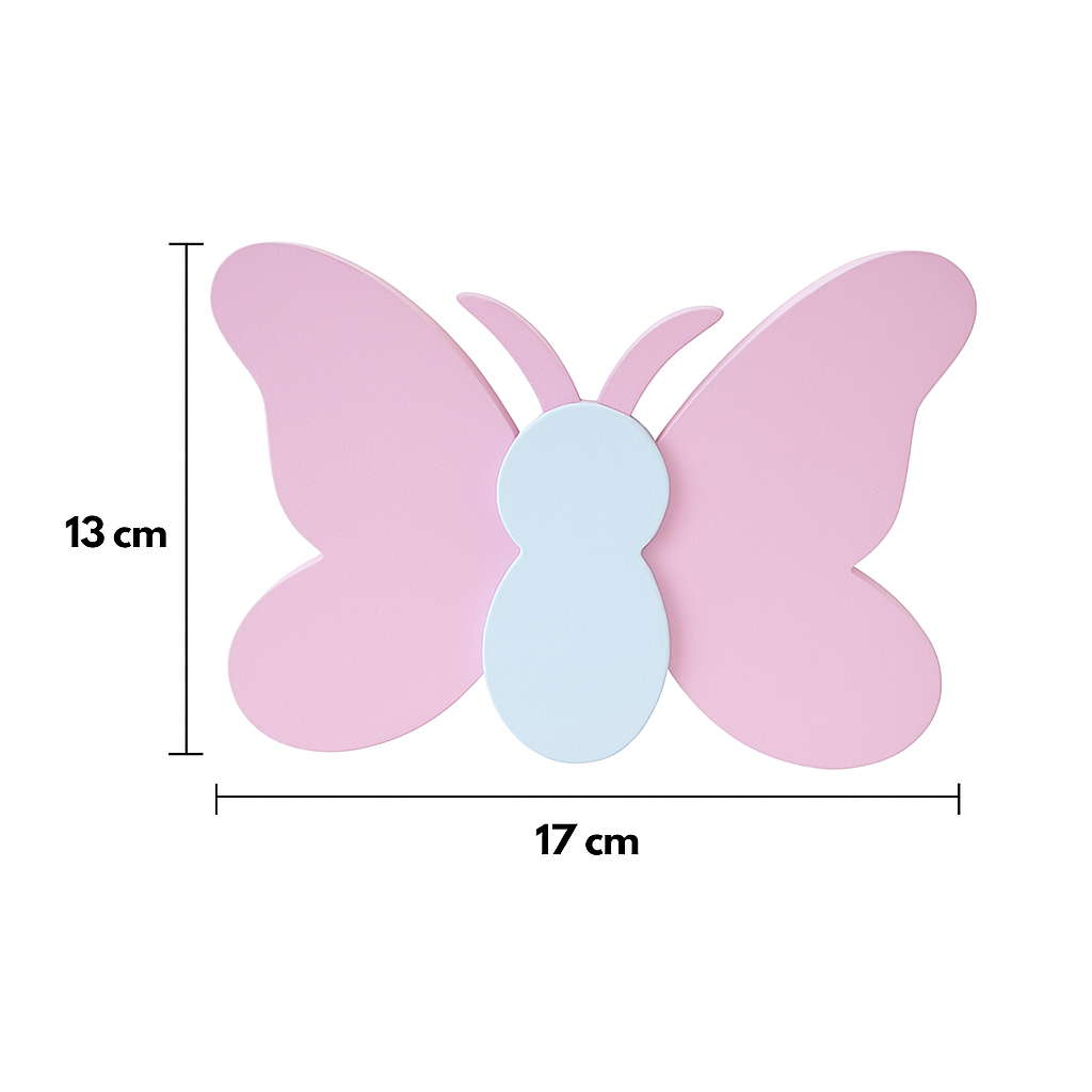 Kit Enfeite Decorativo Infantil Para Prateleira Flor Borboleta Trio Coração Quarto De Criança Bebe