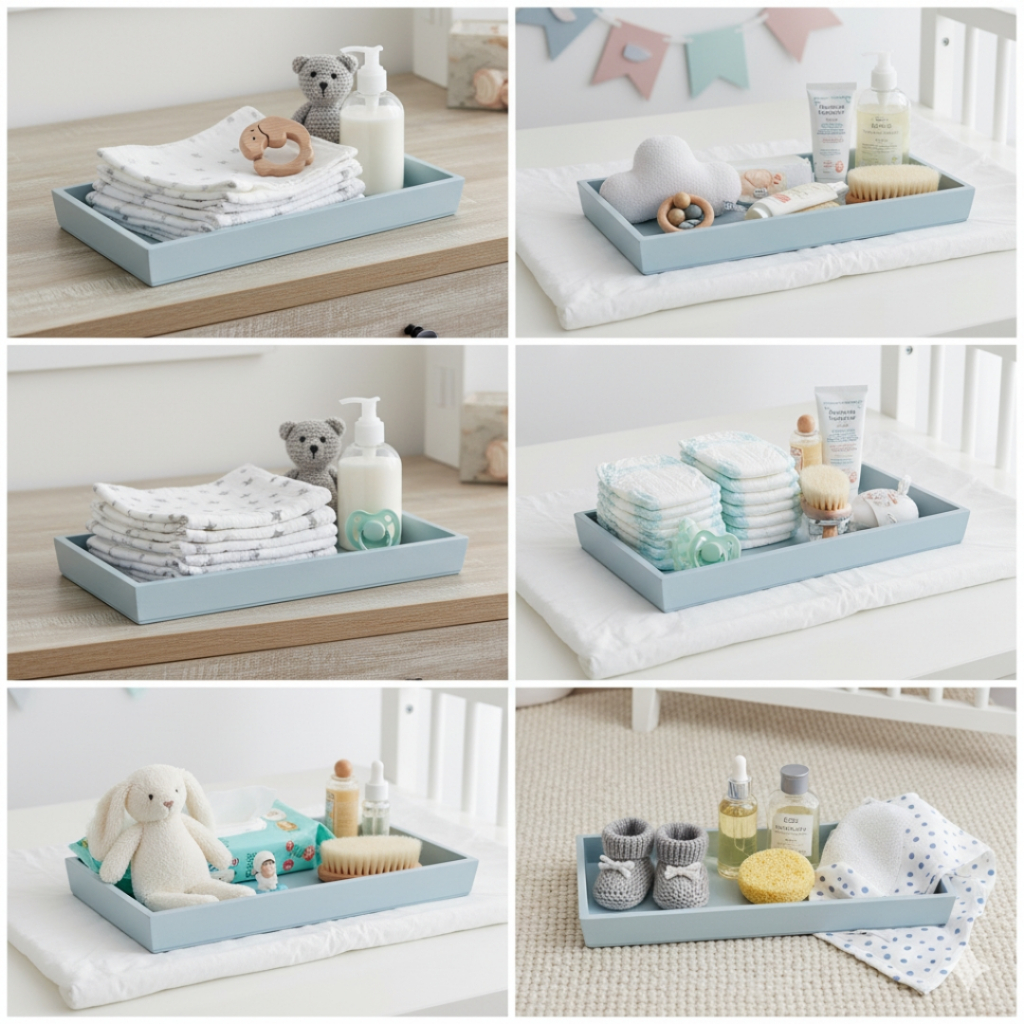 Bandeja Em Mdf Suporte Organizador Para Kit Higiene Bebe Decoração Quarto Infantil Multiuso