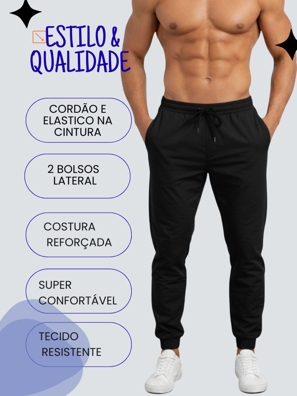 Calça Jogger Masculina Tactel Skinny Slim Punho Barra 2 Bolsos Lateral Esportiva Academia Casual