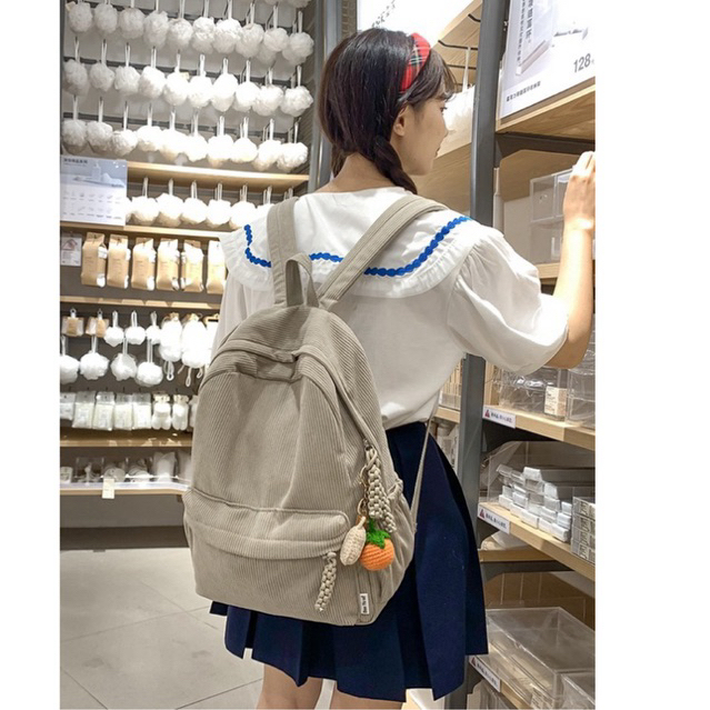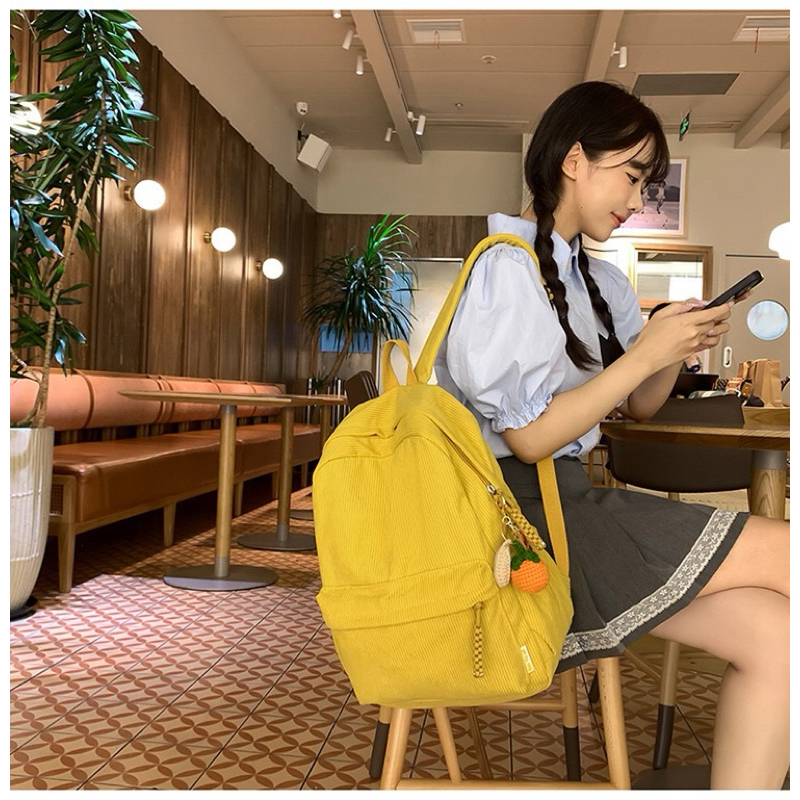 Mochila Veludo Grande Feminina Estilosa Cor Sólida Dia A Dia [5808]