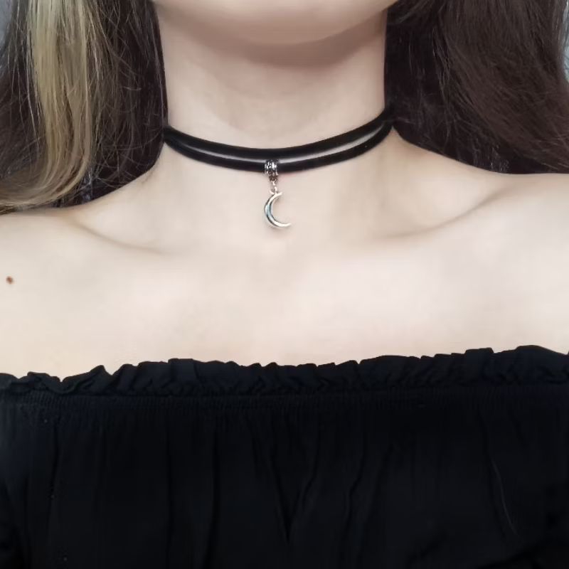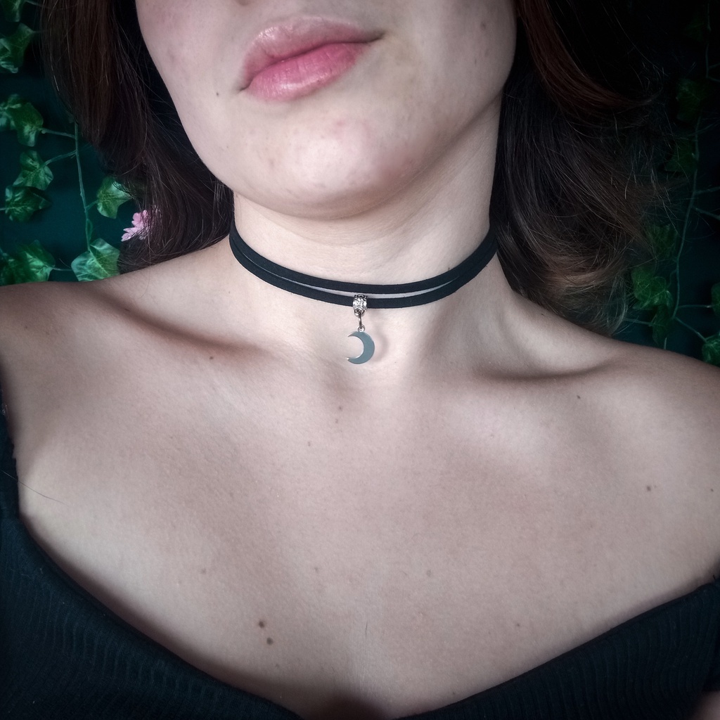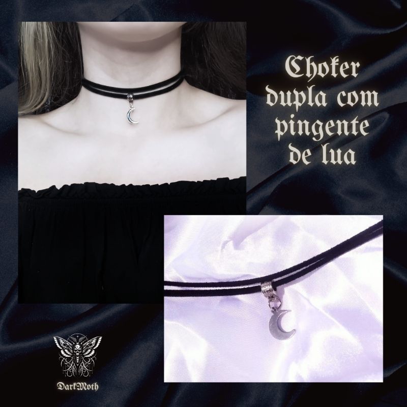 Choker gargantilha dupla pingente de lua místico