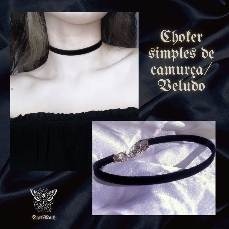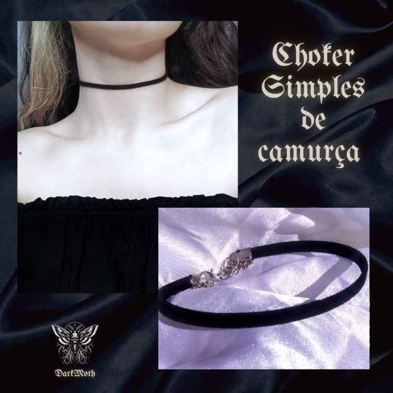 Choker gargantilha veludo camurça preta simples courino choker básica