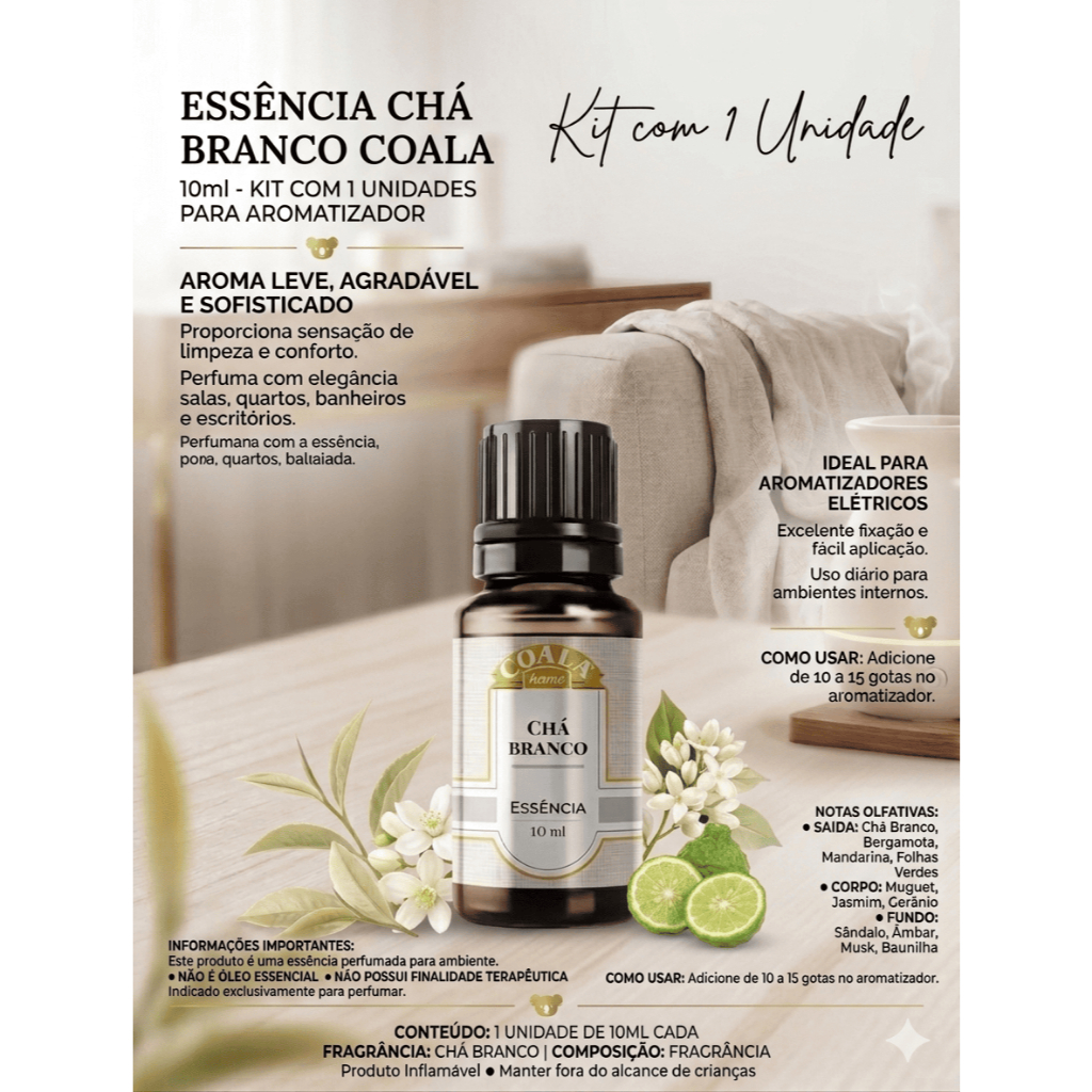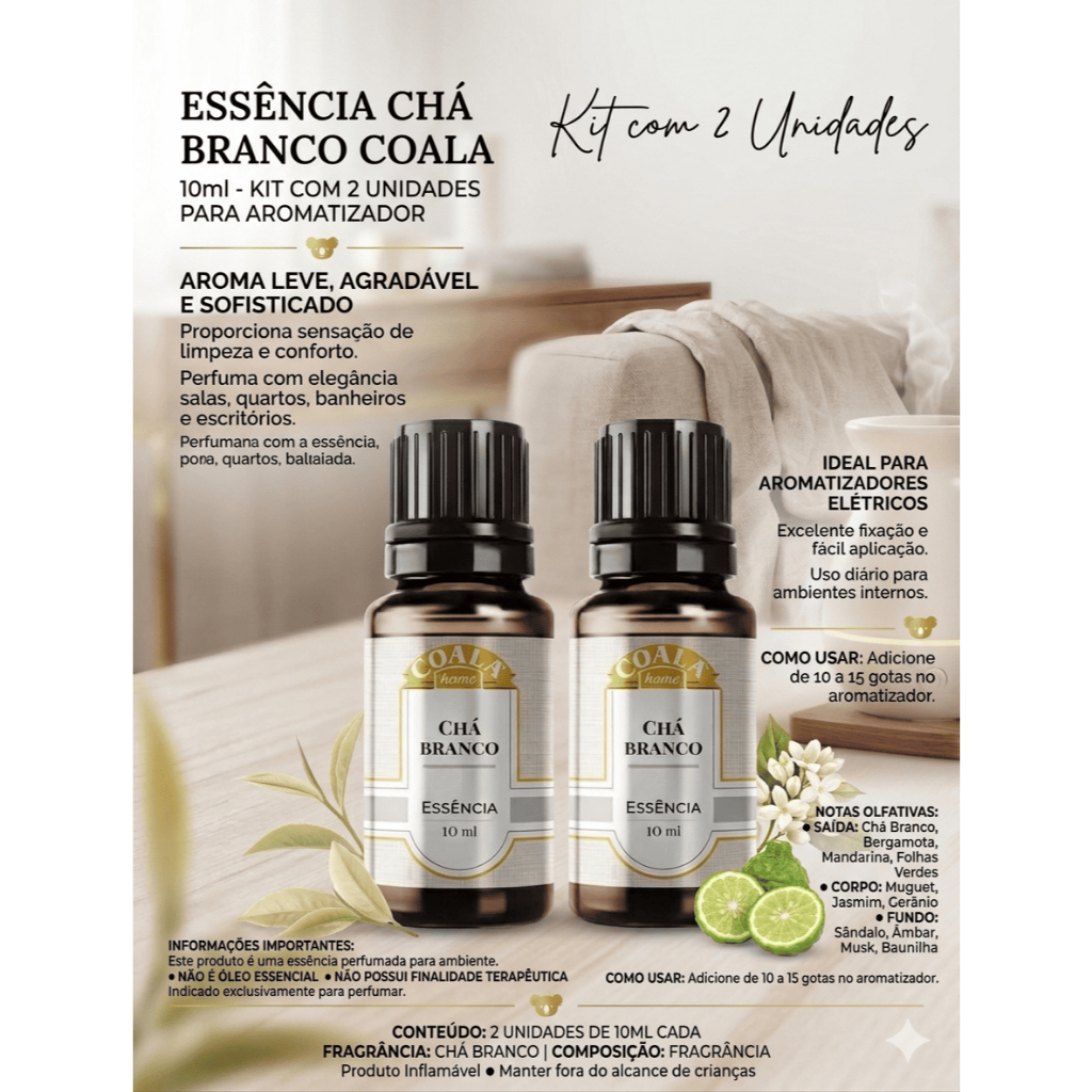 Kit 2 Essência Coala Chá Branco 10ml Para Aromatizador Difusor Perfumador de Ambiente