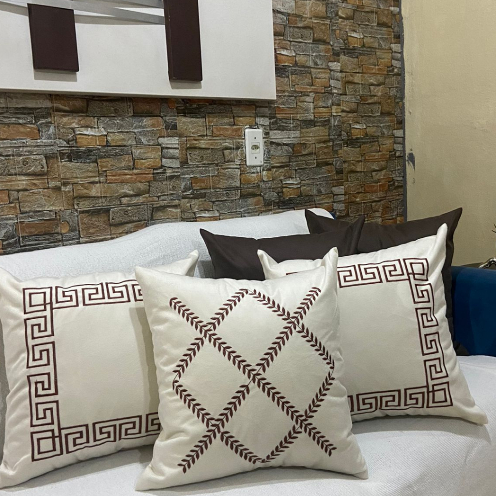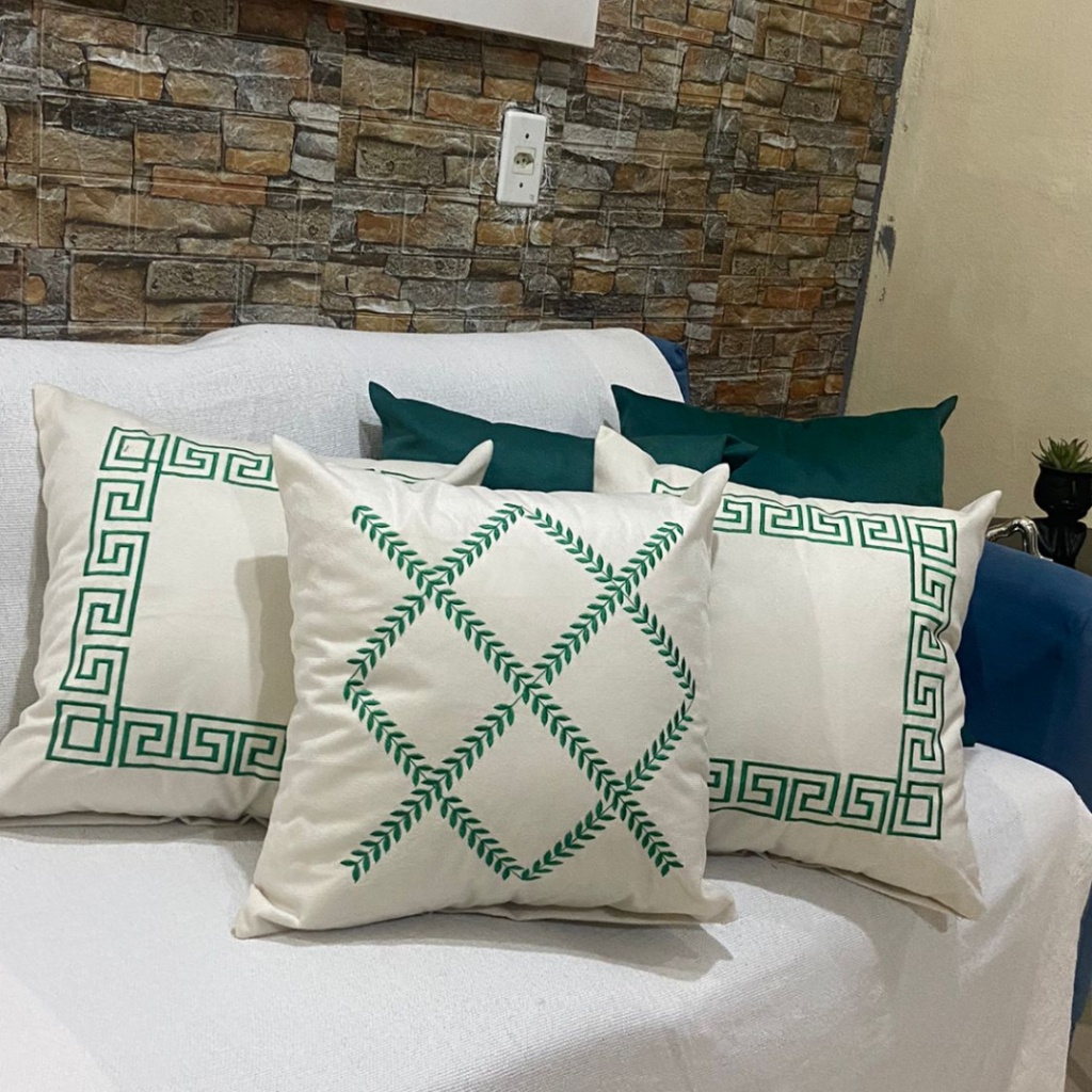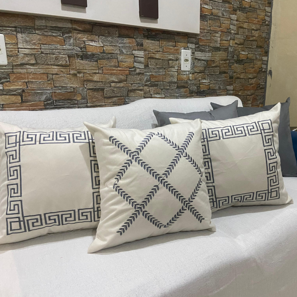 Kit de Capa de Almofada Bordada Suede Decorativa - Escolha Sua Combinação