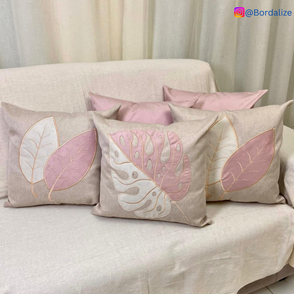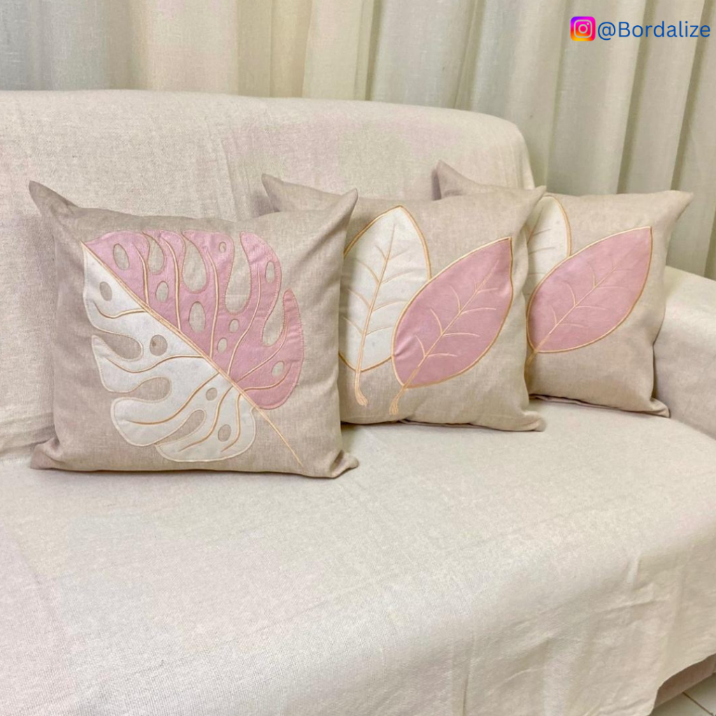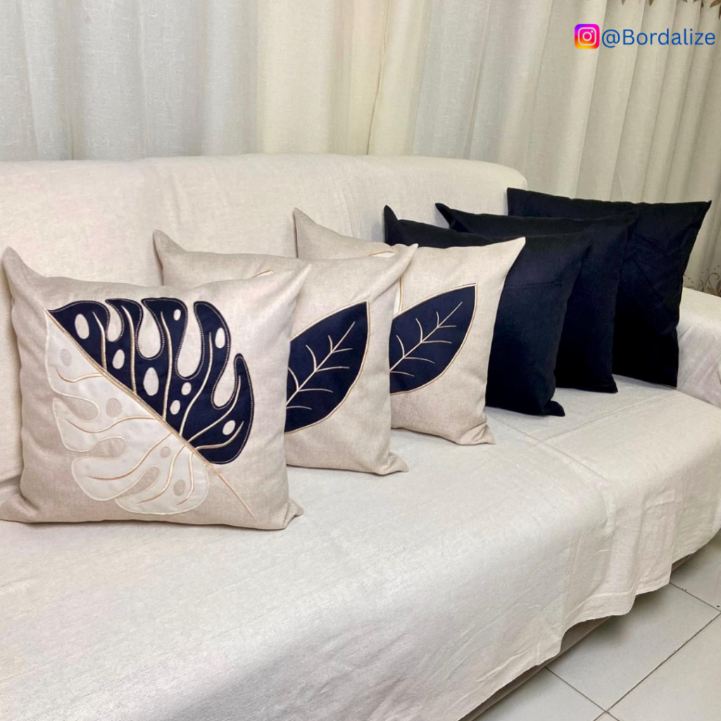 Kit de Capa de Almofada Linho Bordada Aplicada Decorativa - Escolha Sua Combinação