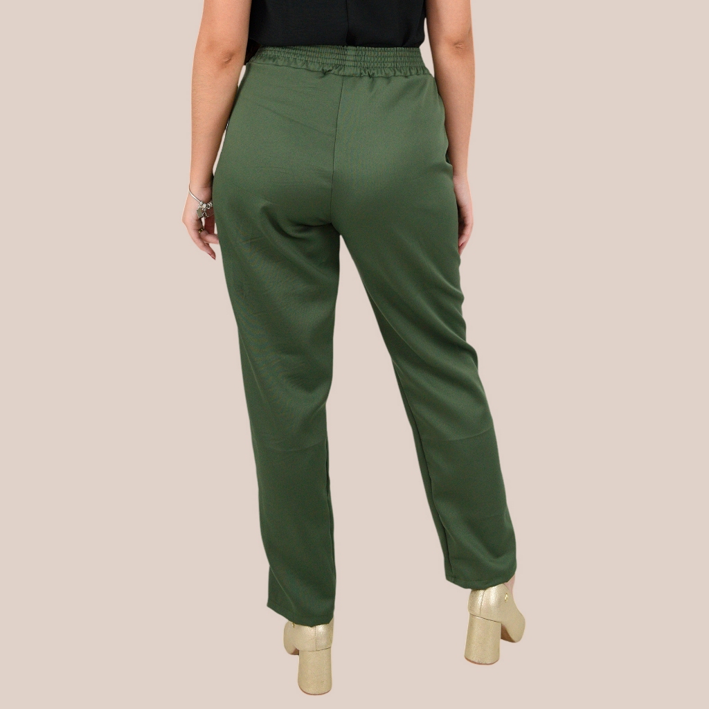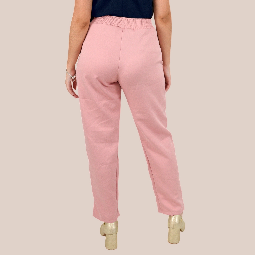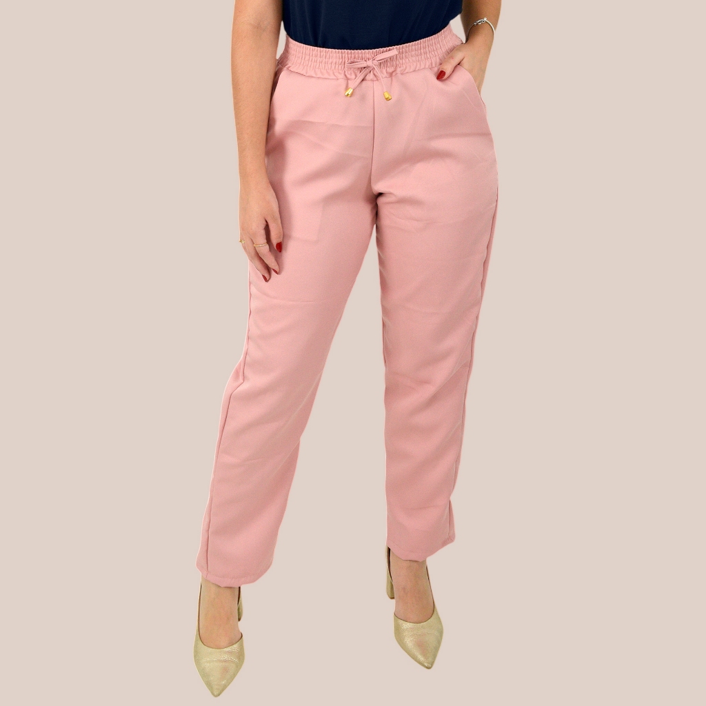 Calça Alfaiataria Feminina Bolsos Elastico Cintura Elegante Casual