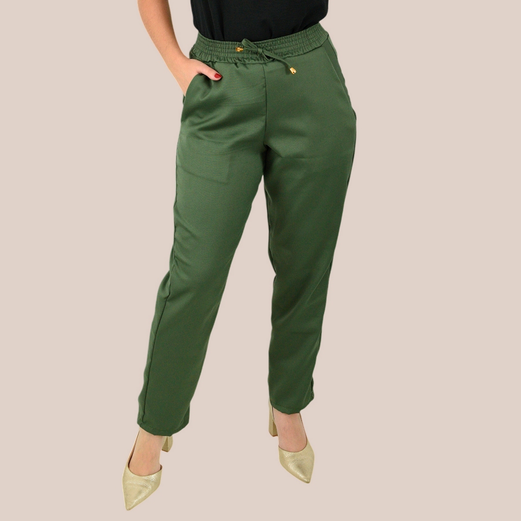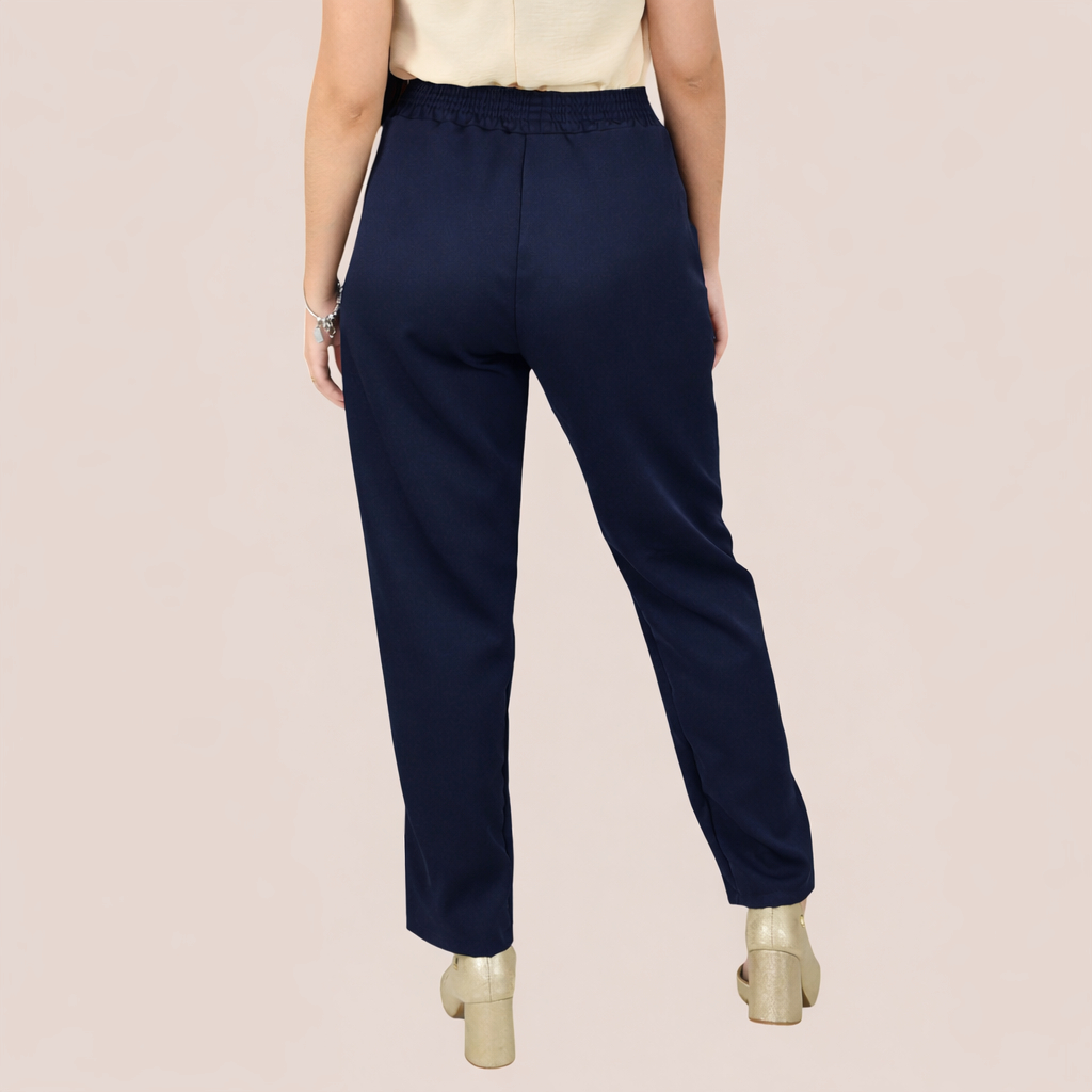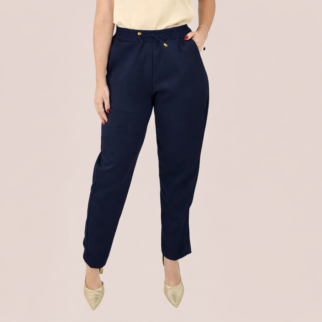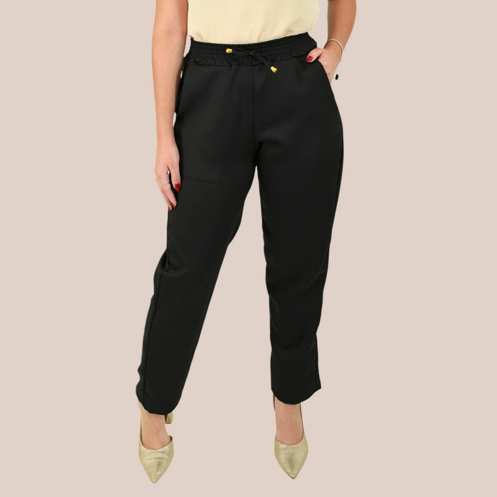 Calça Alfaiataria Feminina Bolsos Elastico Cintura Elegante Casual