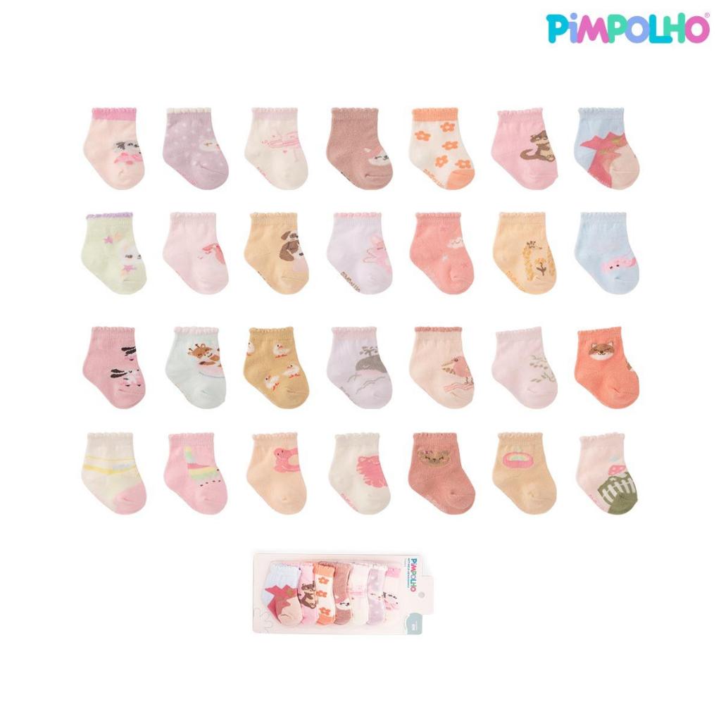 Meia Enxoval RN 7 Pares Estampas Sortidas Conforto Algodão Bebê 0 a 4 Meses Presente