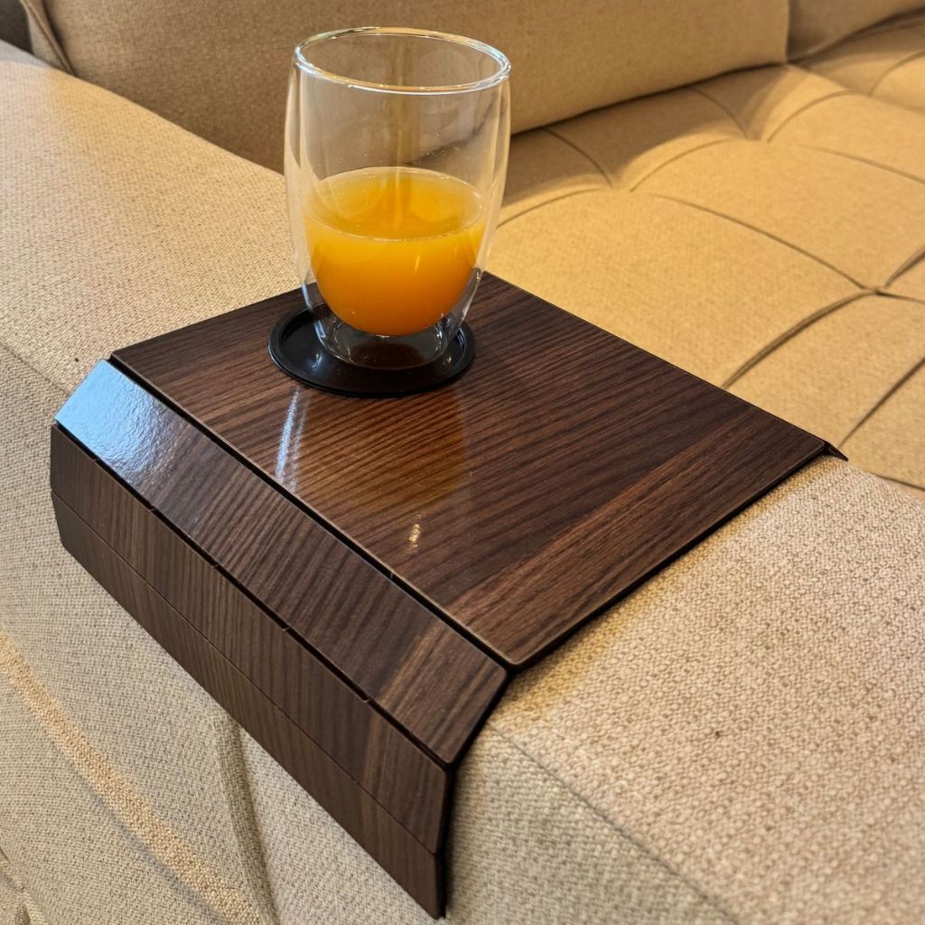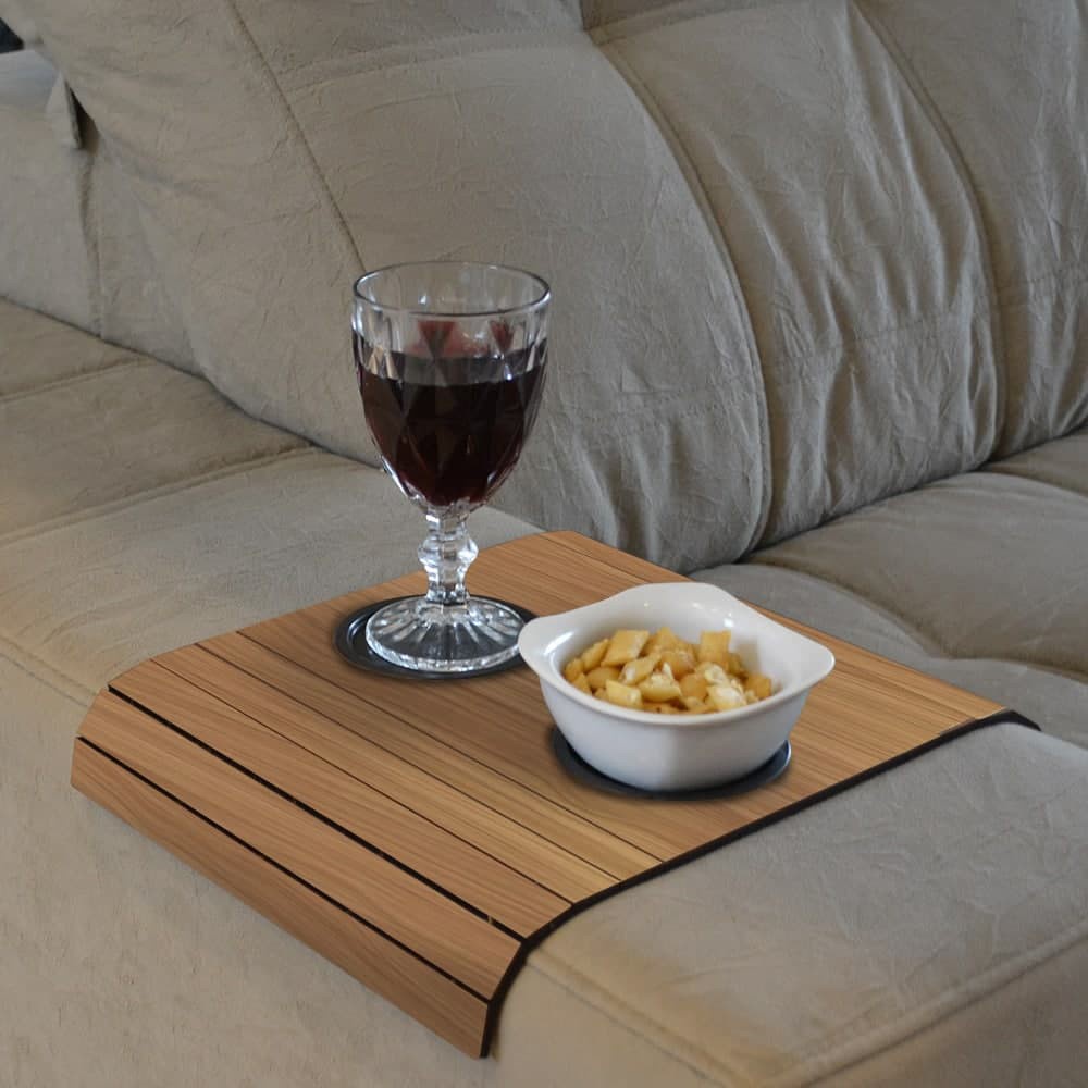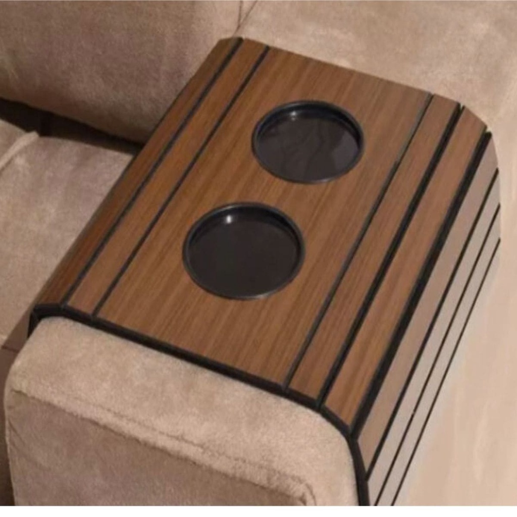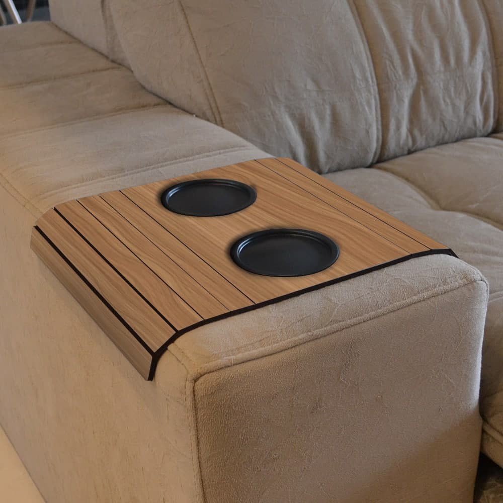 Suporte Porta Copo Braço Sofá Esteira Bandeja Flexível De Madeira