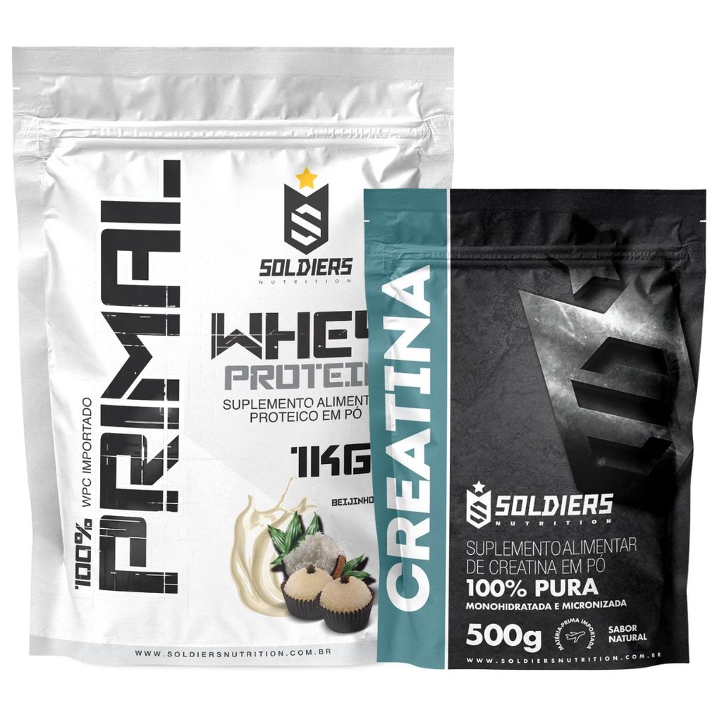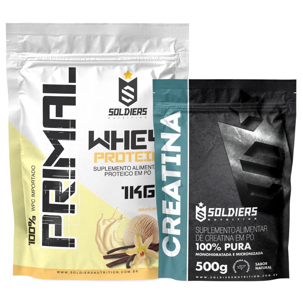 Kit: Whey Protein Primal 1kg + Creatina 500g Soldiers Nutrition Força Performance Suplemento Aminoácido