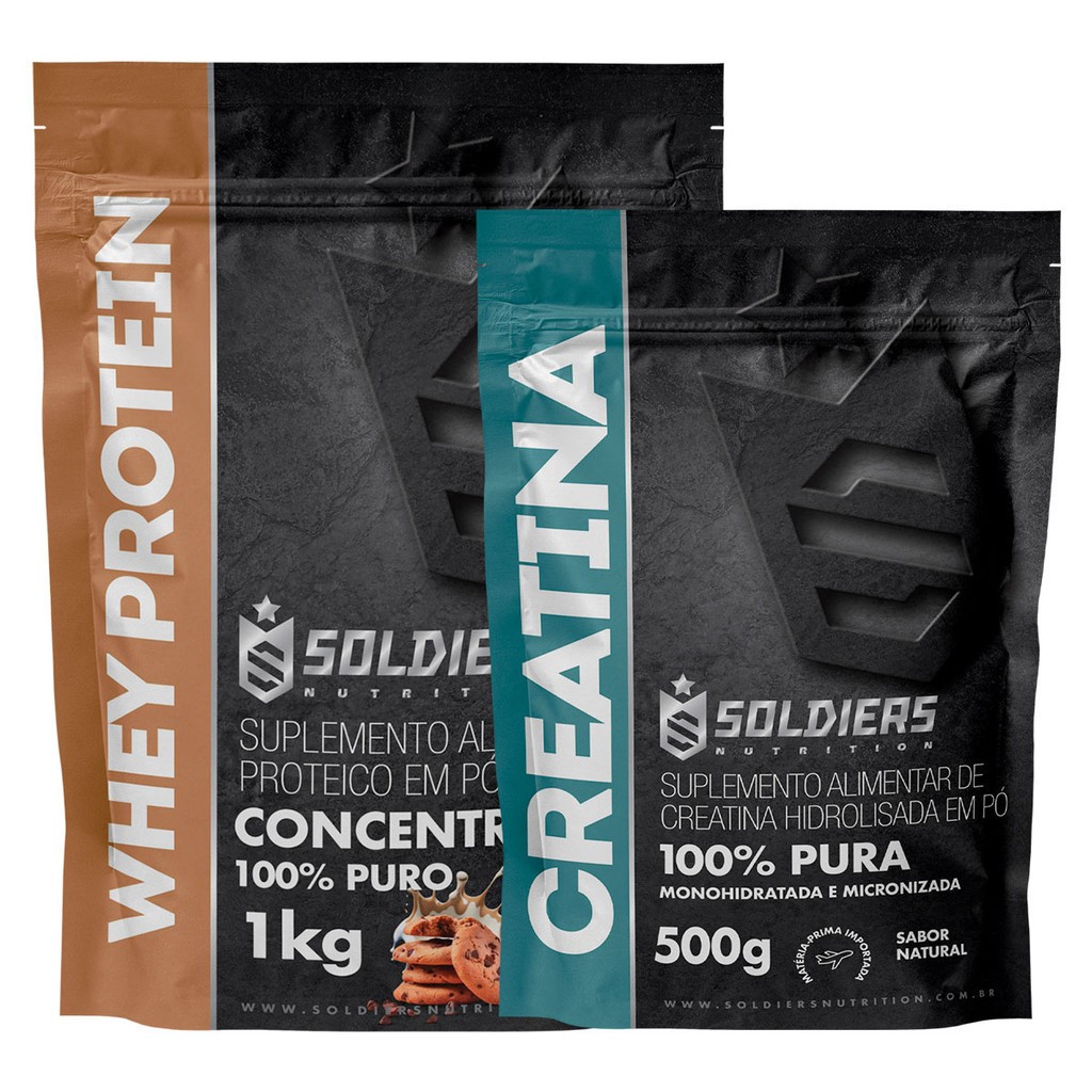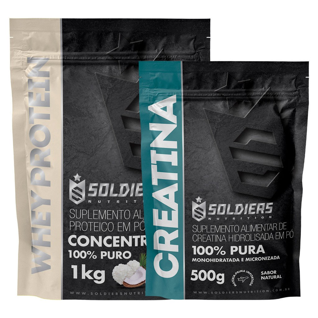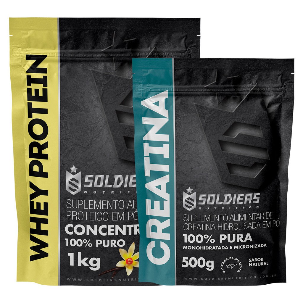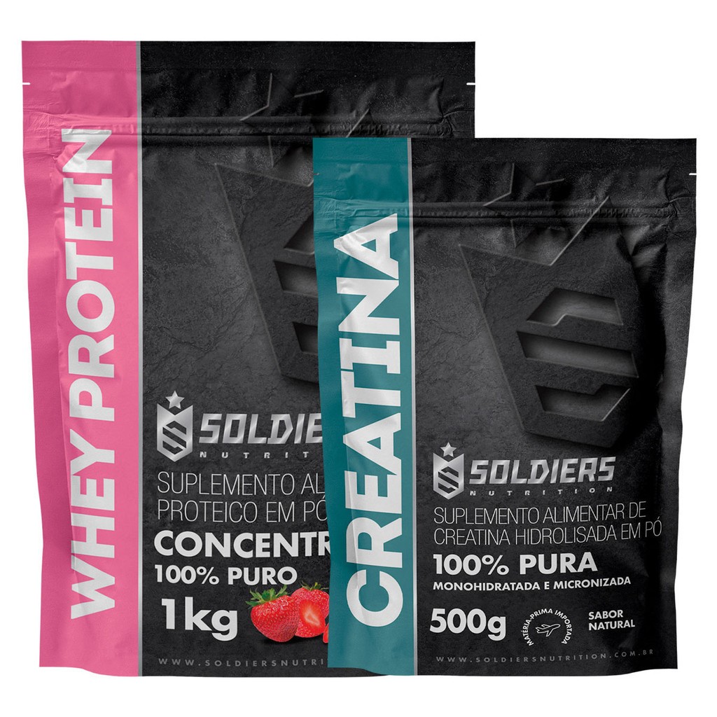 Kit: Whey Protein Concentrado 1kg + Creatina 500g Soldiers Nutrition Força Performance