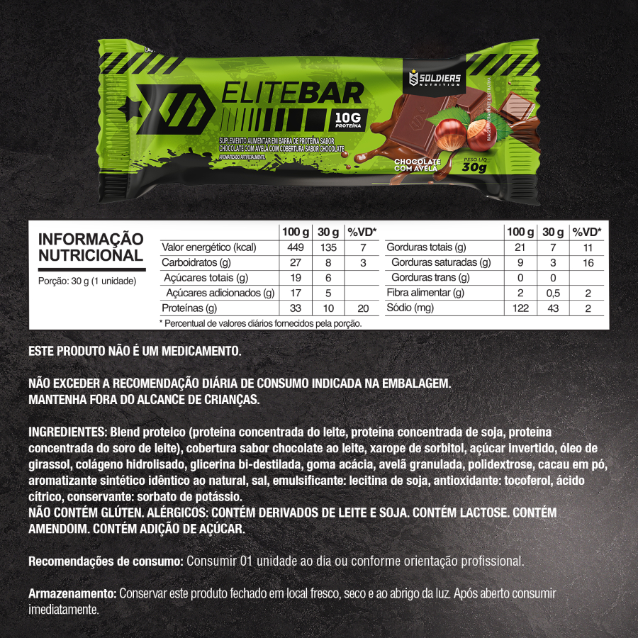 Kit: Elitebar 30g Barra De Proteína 6 Un Soldiers Nutrition Proteína Muscular