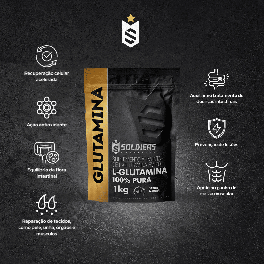 L-Glutamina 1kg 100% Pura Importada Soldiers Nutrition Aminoácido Suplemento Nutricional Recuperação Muscular