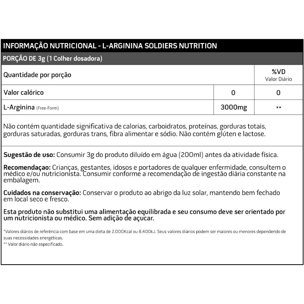 Kit: Arginina 250g + Beta Alanina 250g Soldiers Nutrition Aminoácido Recuperação
