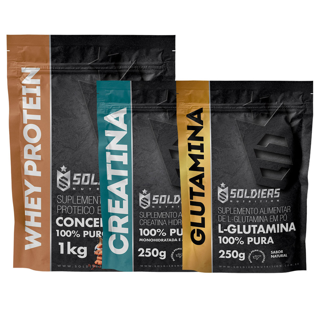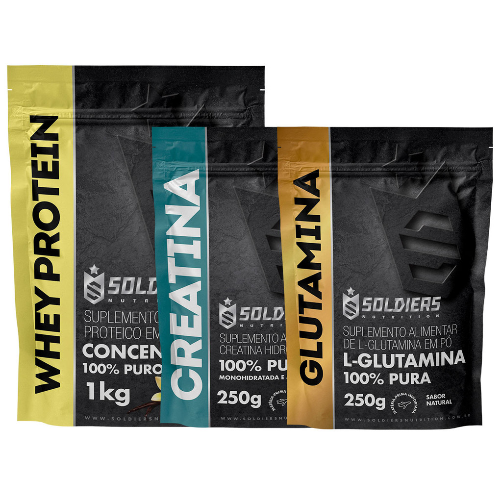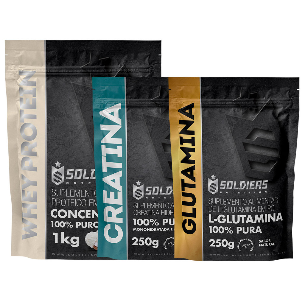 Kit: Whey Protein Concentrado 1kg + Creatina 250g + Glutamina 250g Soldiers Nutrition Força Performance