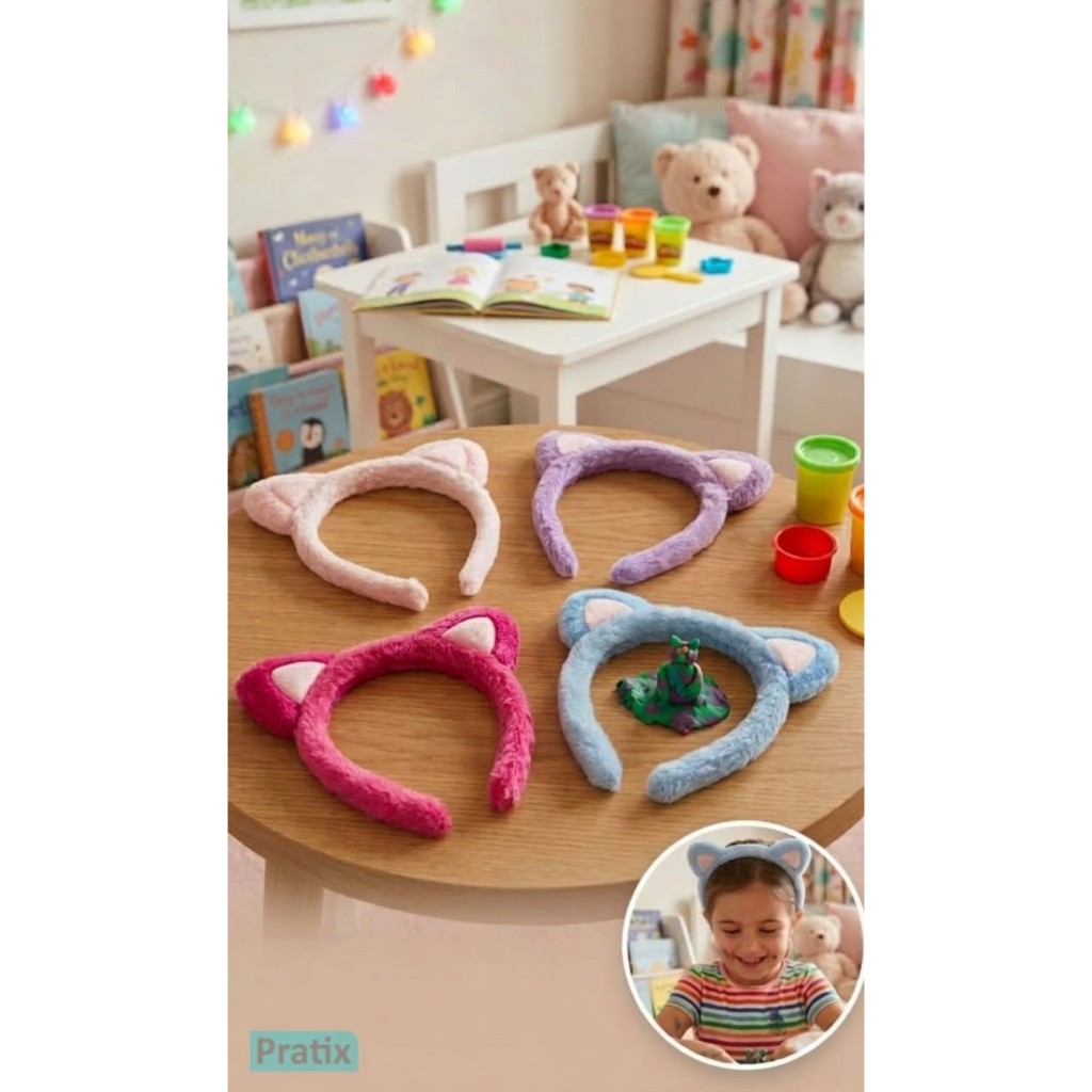 Tiara com Orelhinhas de Pelúcia Infantil Fantasia Gatinho Colorida Cosplay