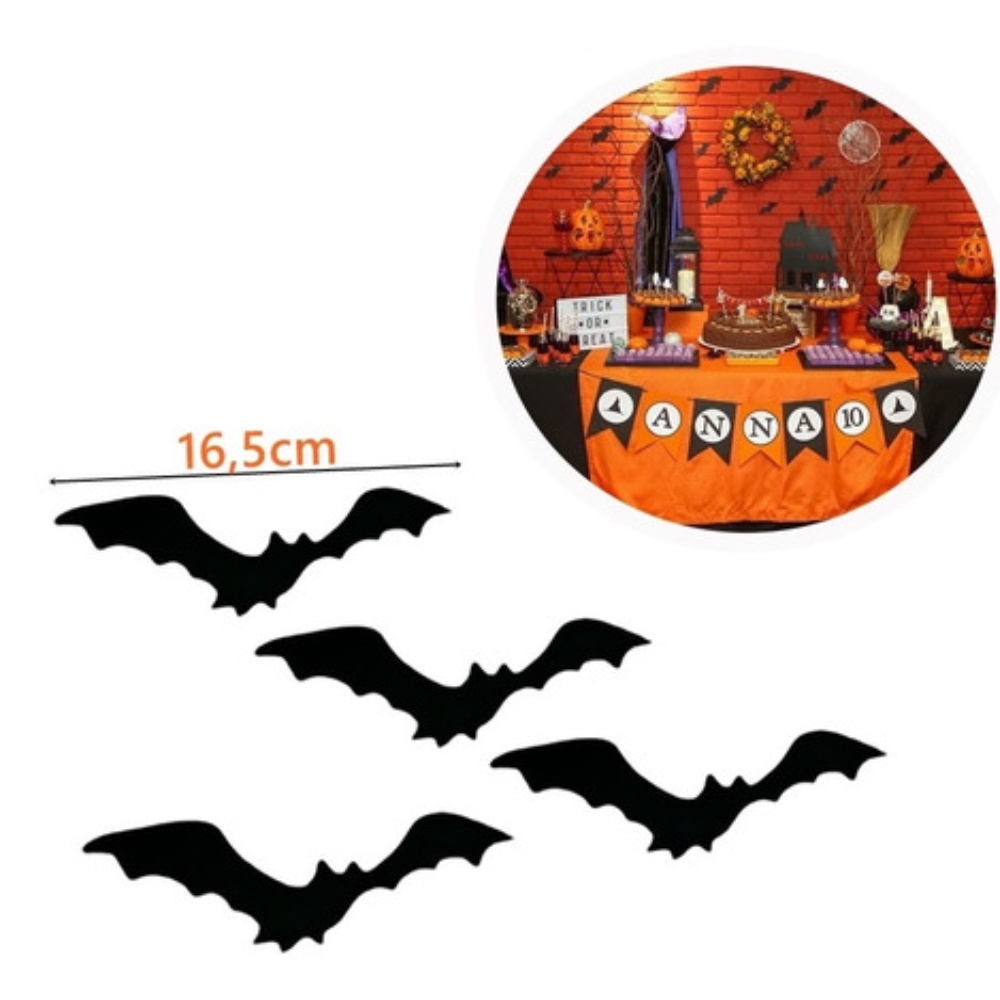 Morcego Parede Auto Relevo Com Cola Kit 04 Para Halloween