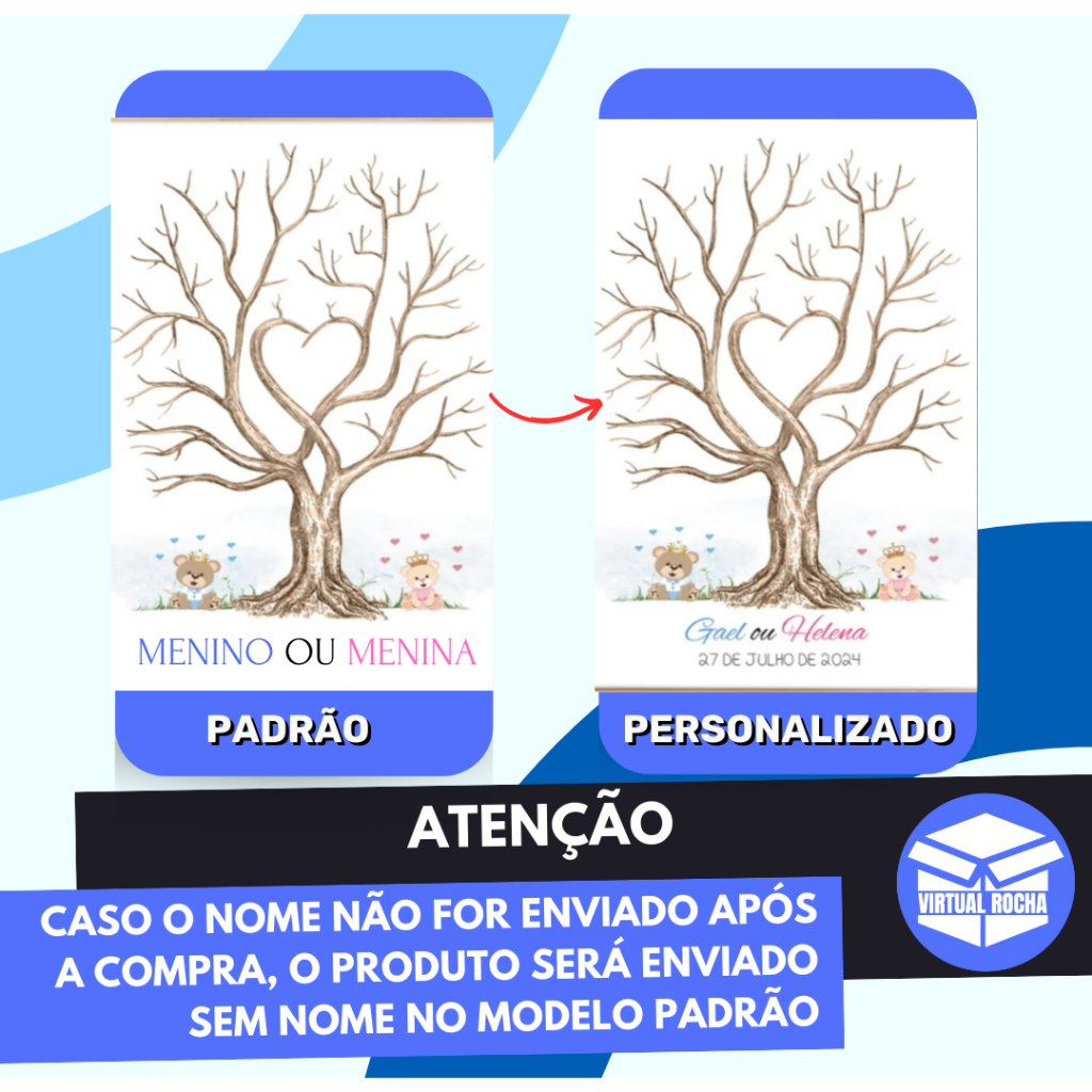 Chá Revelação Árvore Digital Urso Bebê Azul Rosa MDF