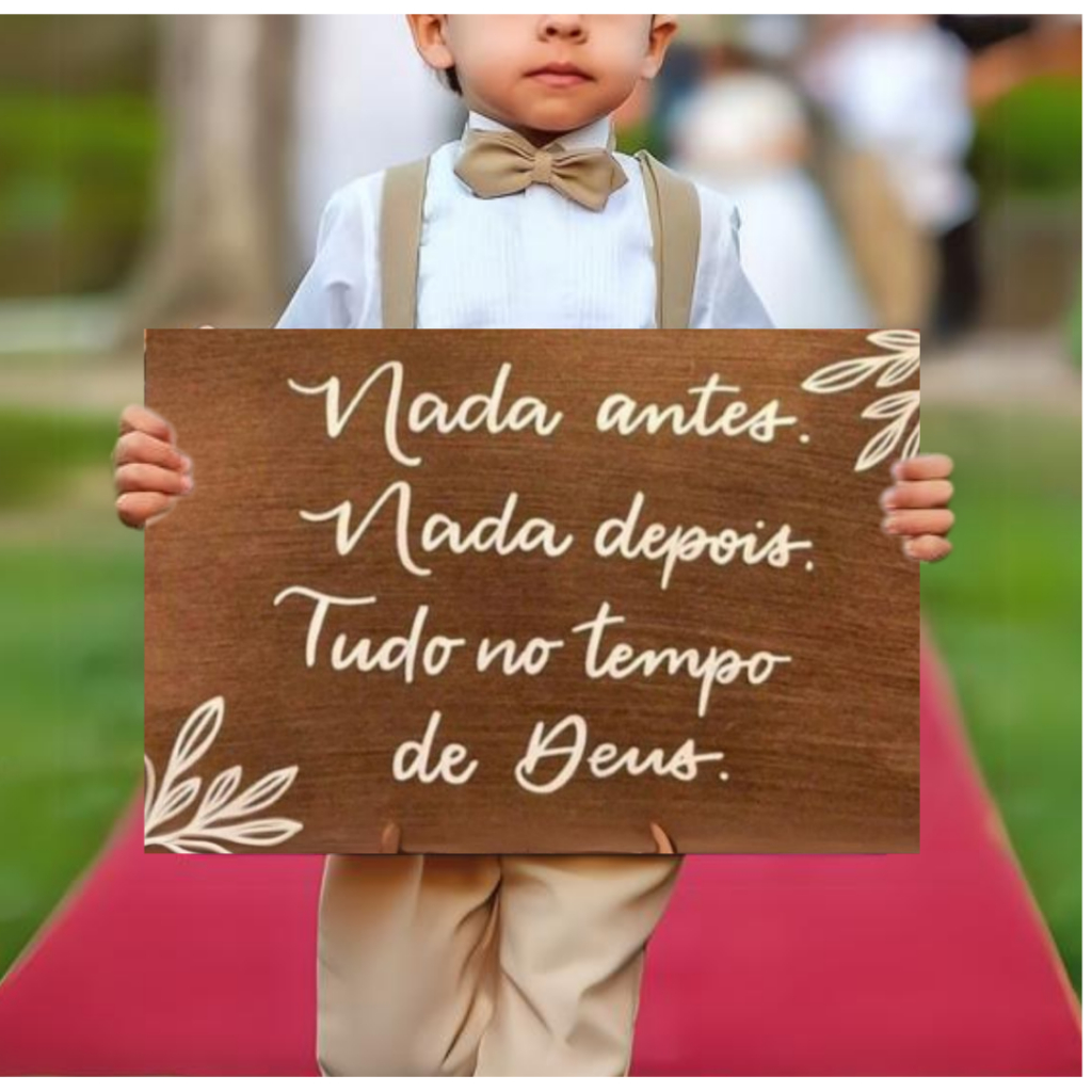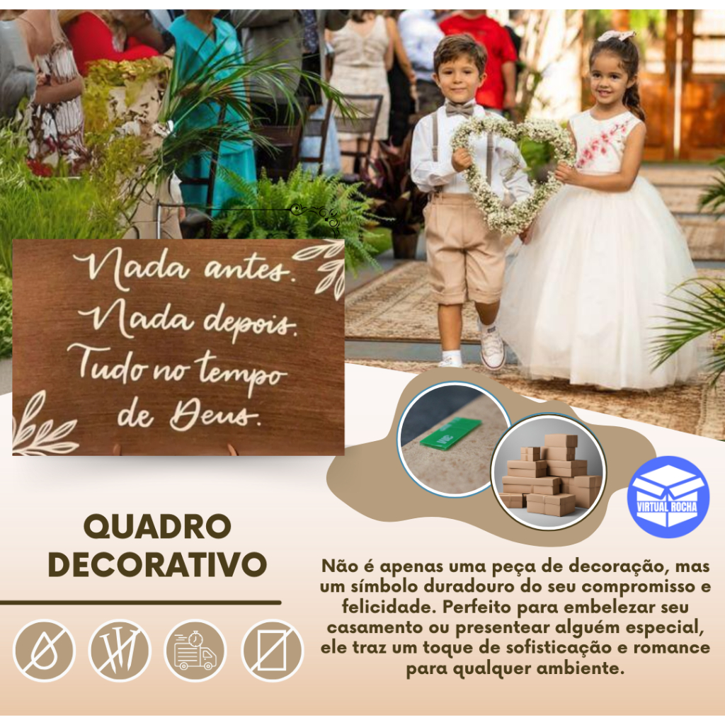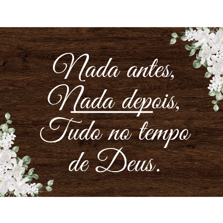 Placa Decorativa Casamento Nada Antes, Nada Depois, Tudo no Tempo de Deus