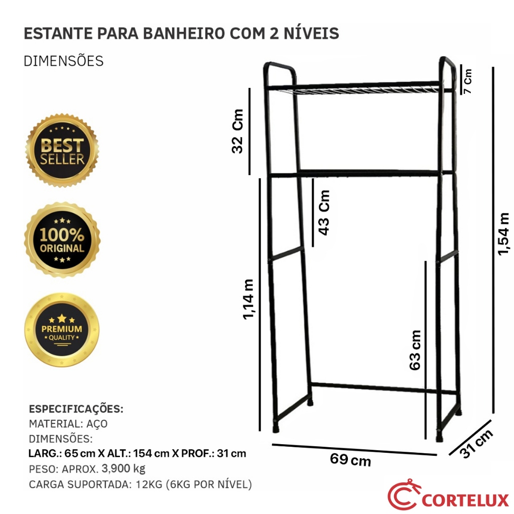 Rack Estante Lavanderia Maquina de Lavar Organizaçao Prateleira Aço Maxeb
