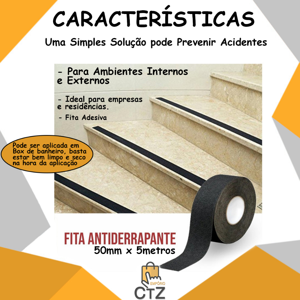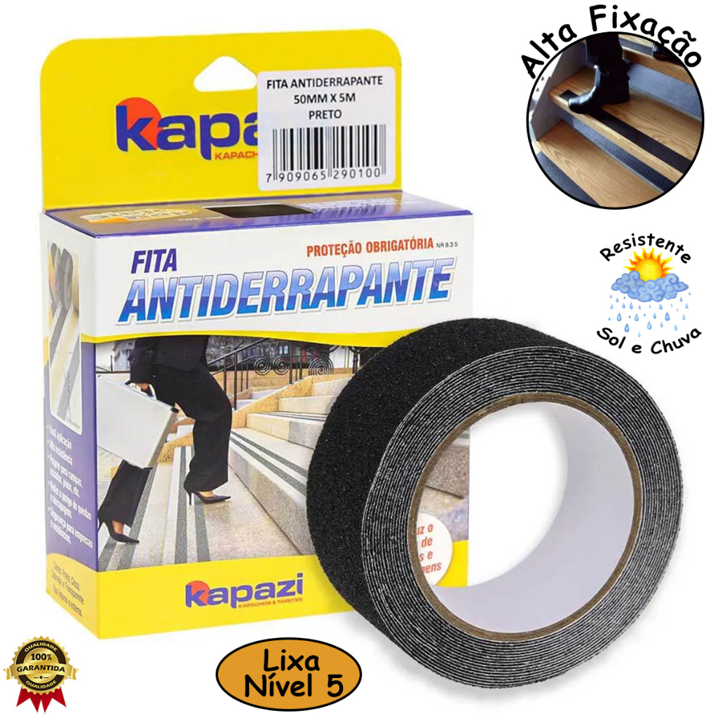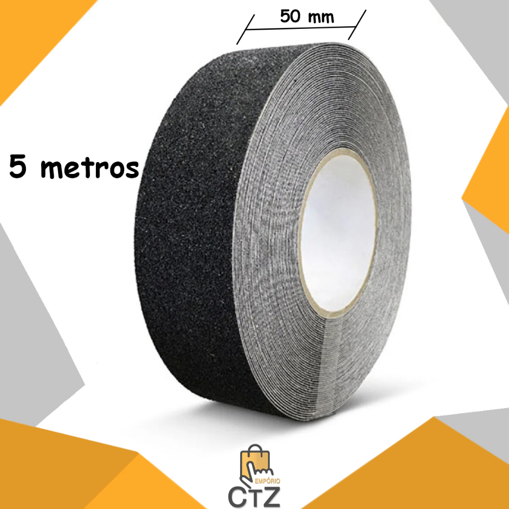 Fita Antiderrapante Lixa 50mm x 5m Preta Prova Água Área Externa