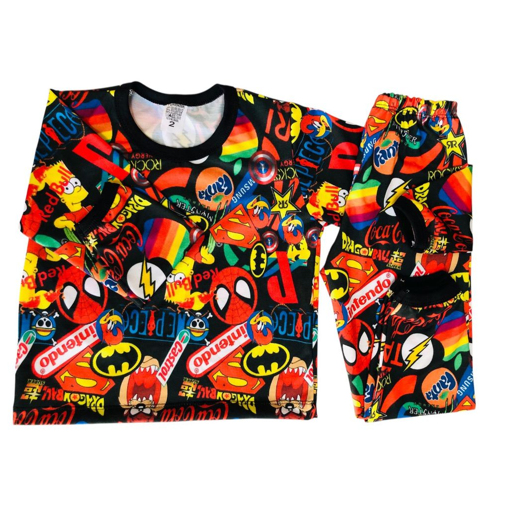CONJUNTO PIJAMA INFANTIL MENINO CALÇA LONGA E CAMISETA MANGA LONGA personagens .