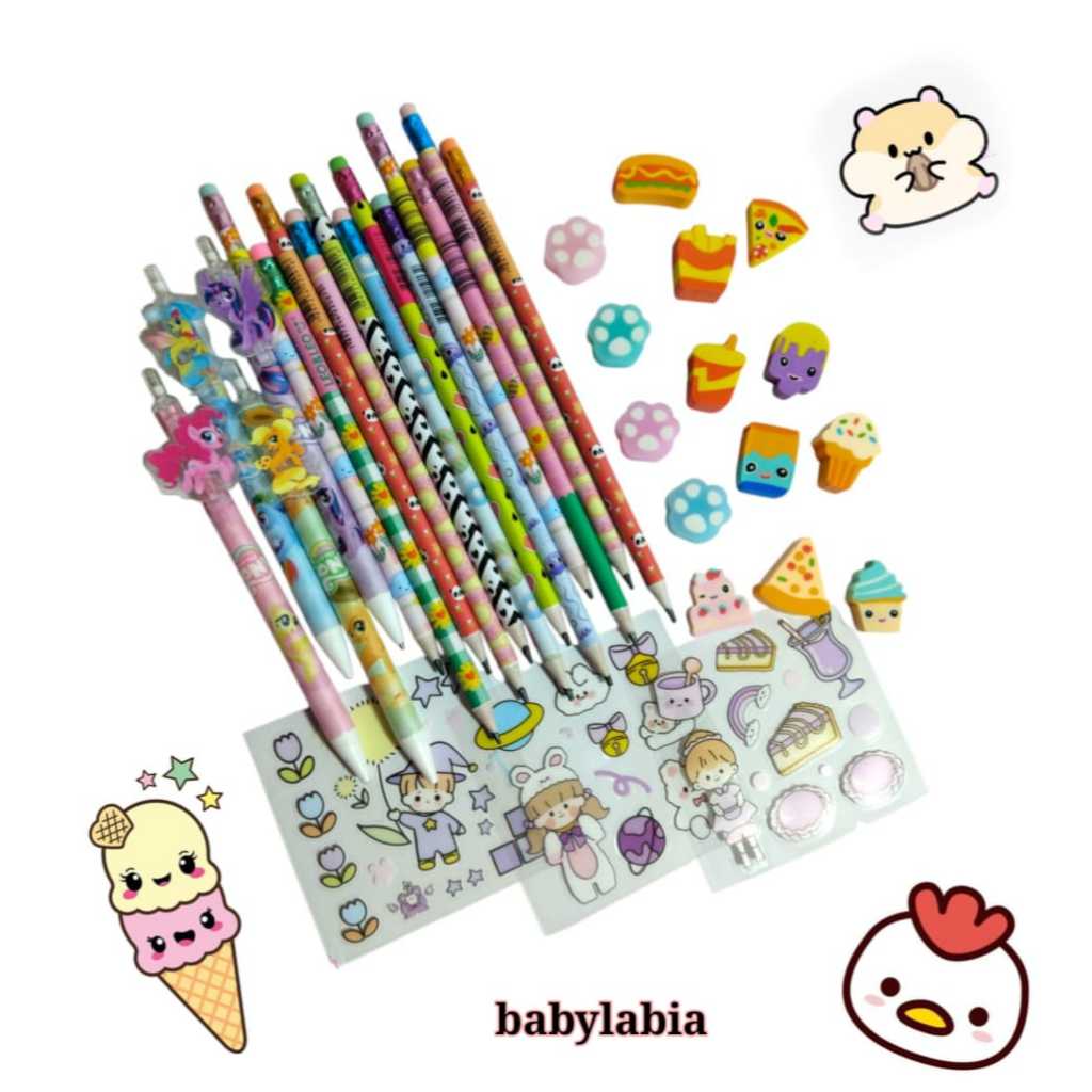 Kit Papelaria Fofa com 20 itens com estojo de pelúcia kit escolar kit papelaria kawaii