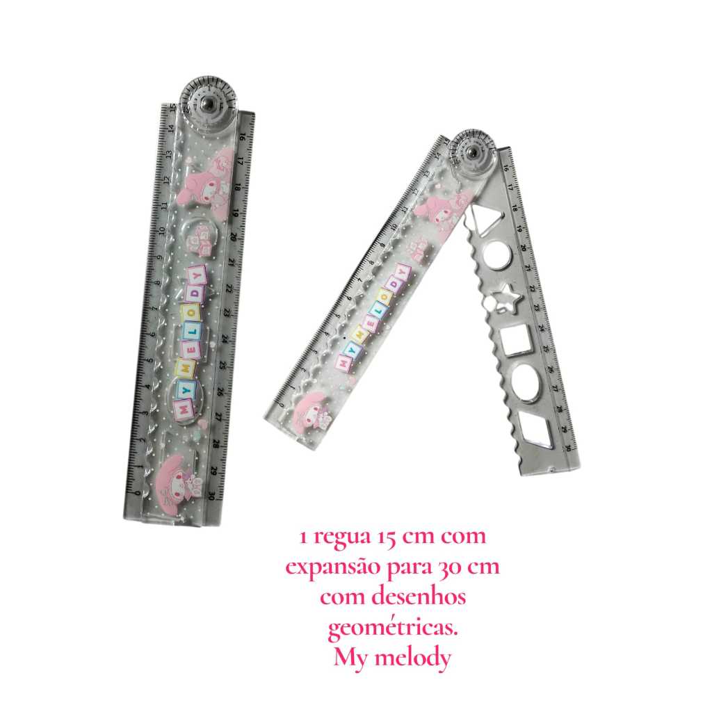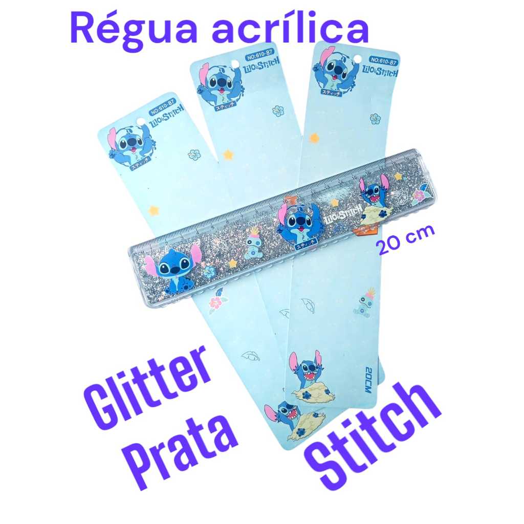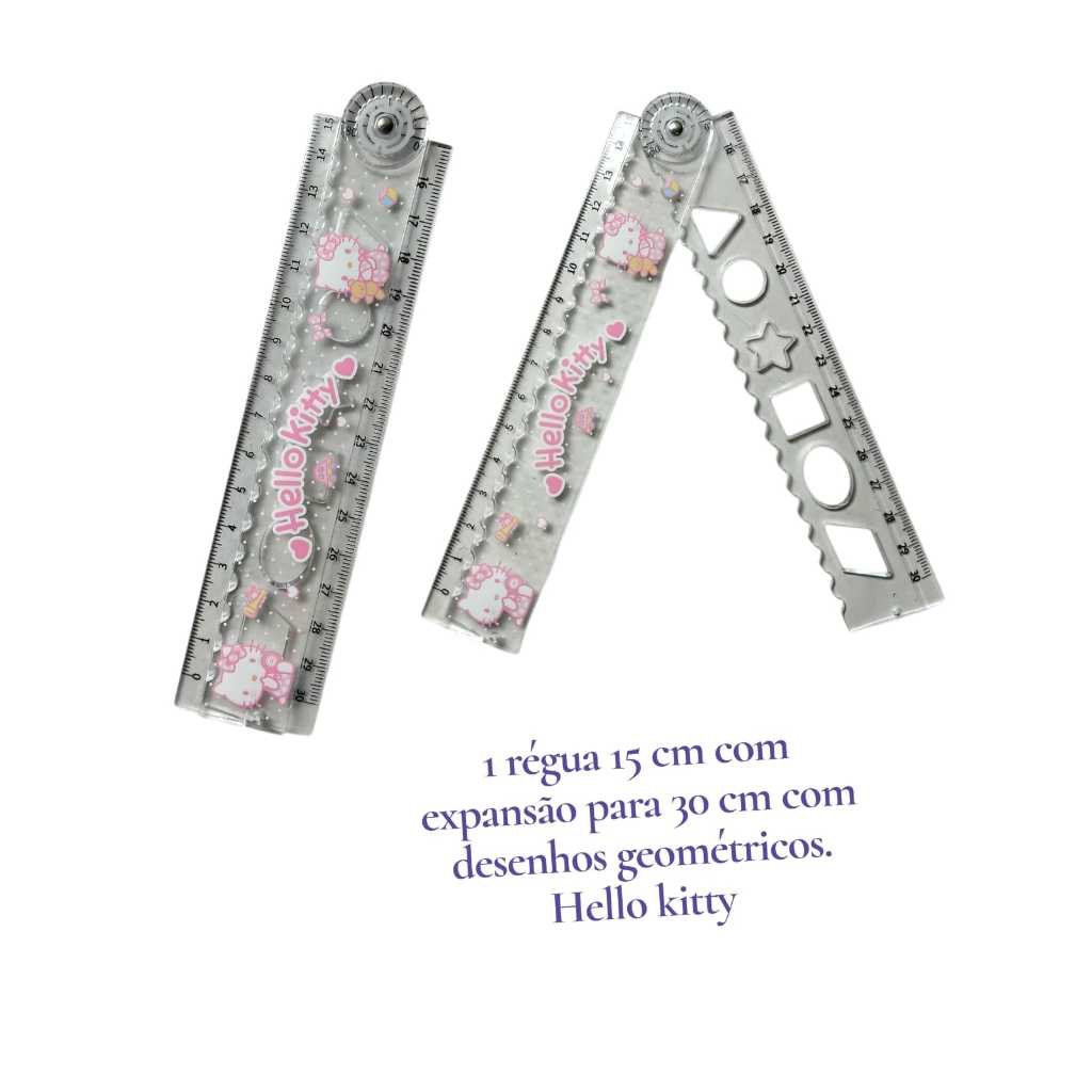 Régua com Glitter Stitch / Hello Kitty / sanrio 20 e 30 cm /papelaria fofa/ material escolar kawaai