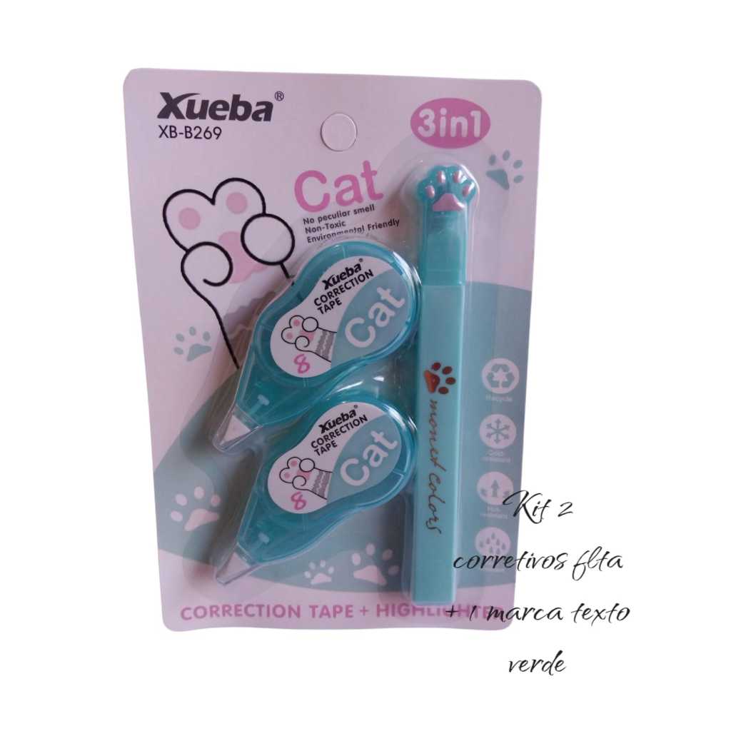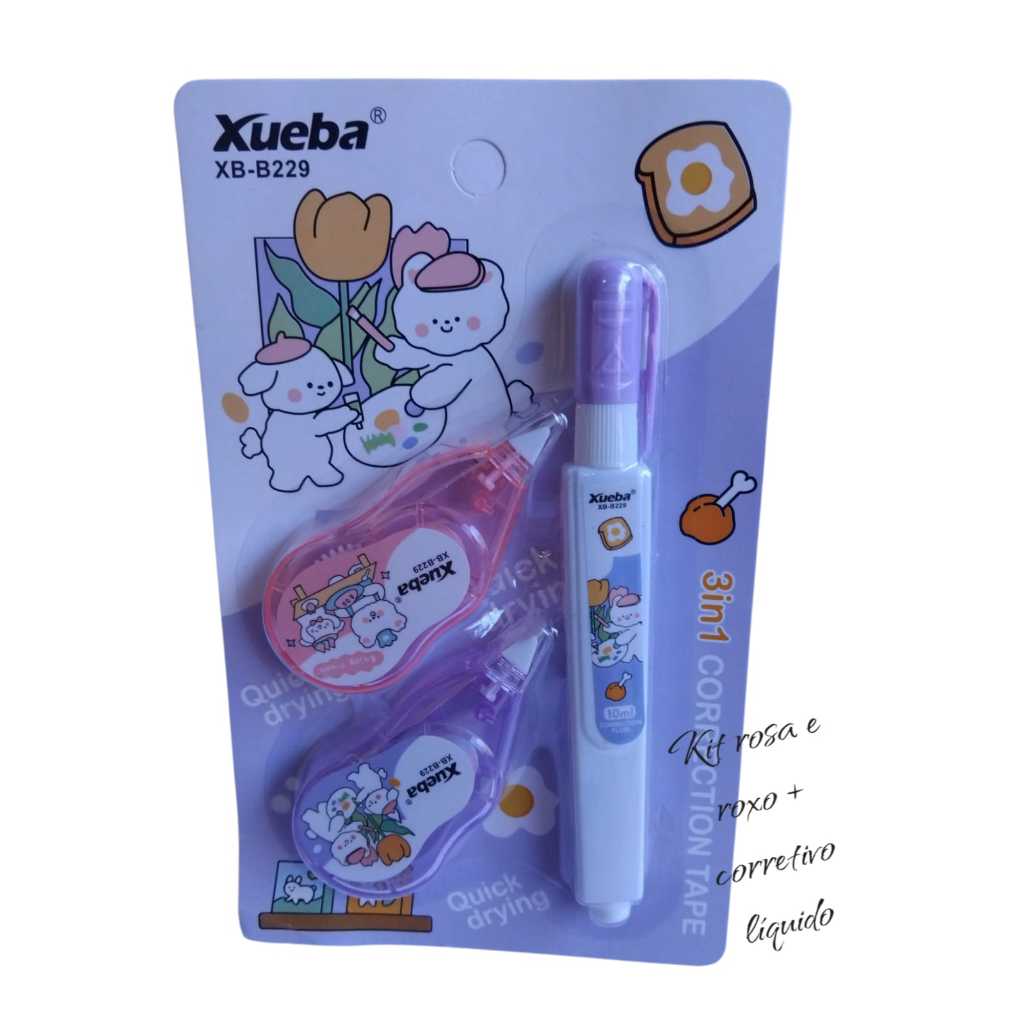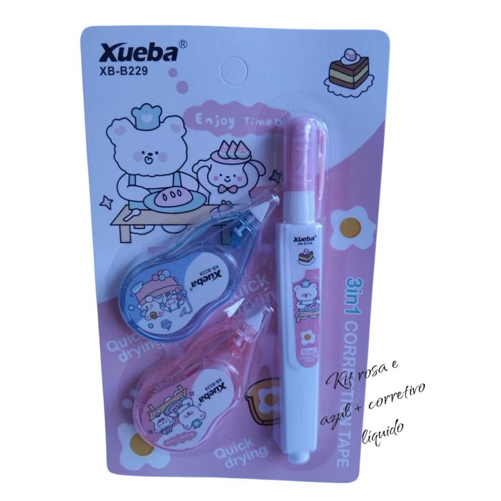 kit corretivo de fita +1 marca texto ou kit corretivo de fita + 1corretivo liquido papelaria fofa