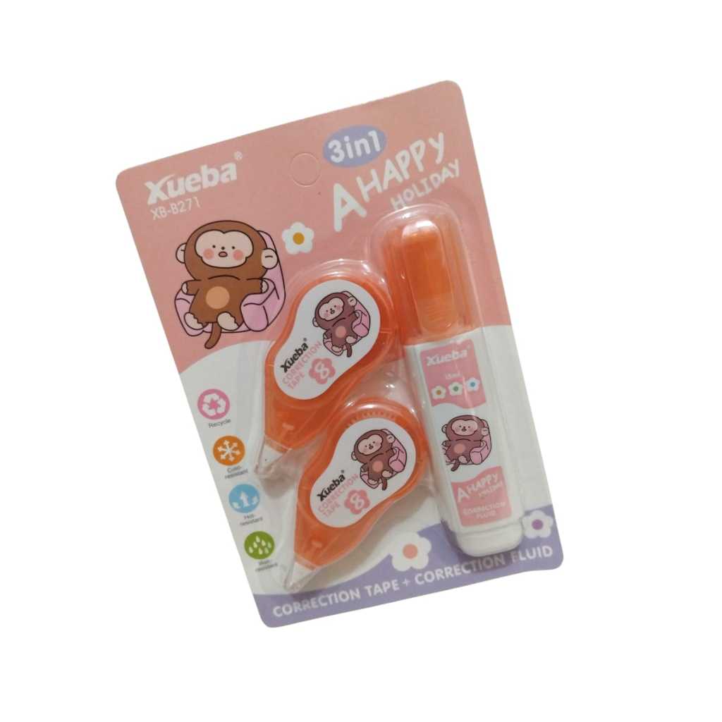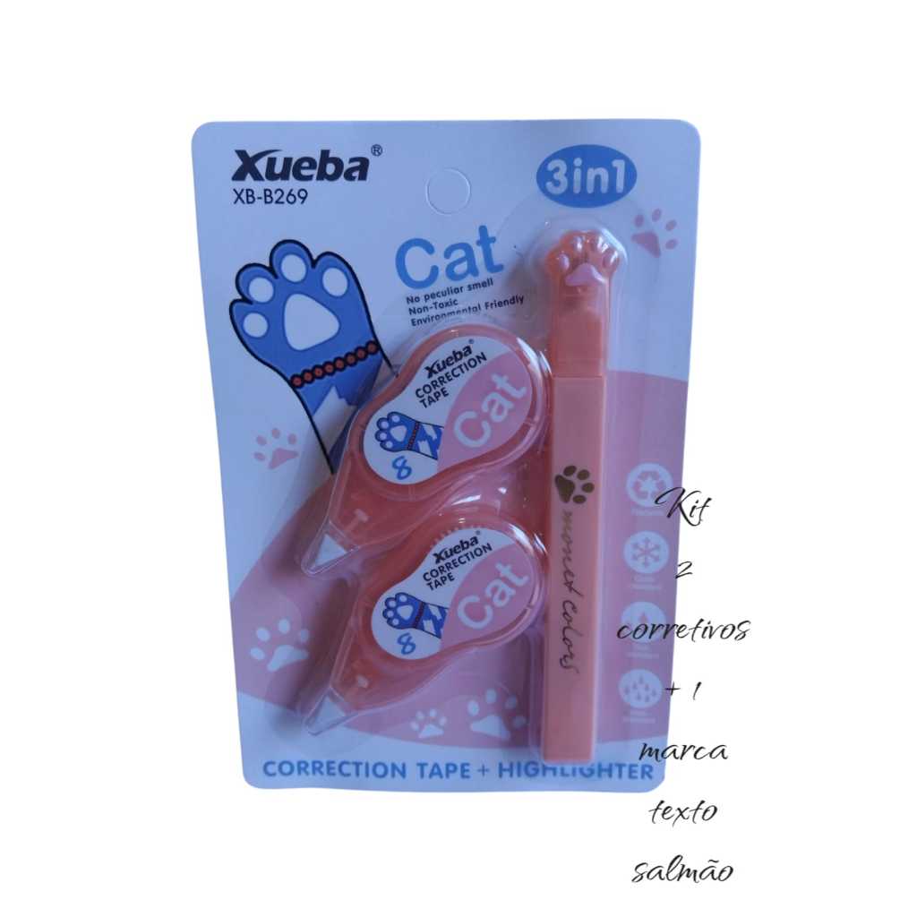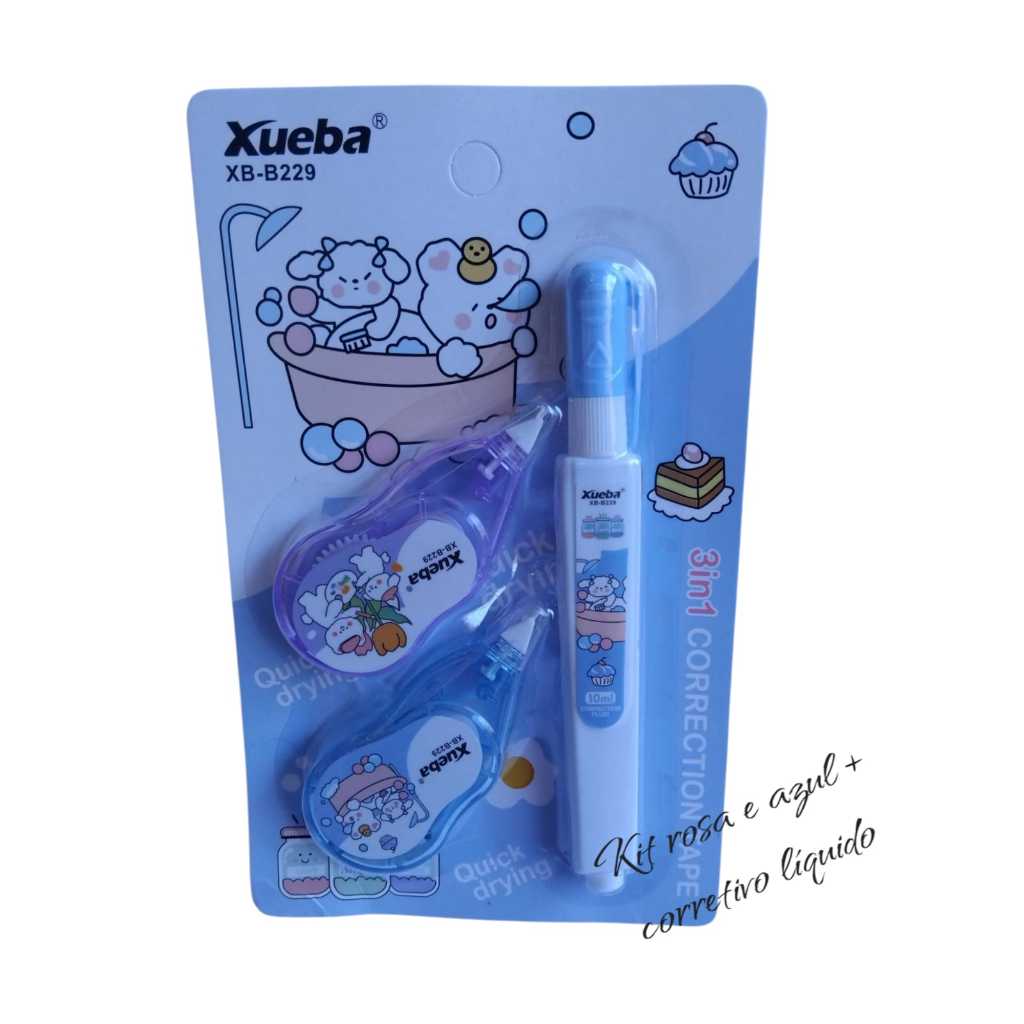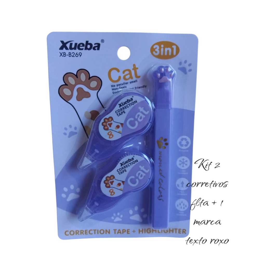 kit corretivo de fita +1 marca texto ou kit corretivo de fita + 1corretivo liquido papelaria fofa