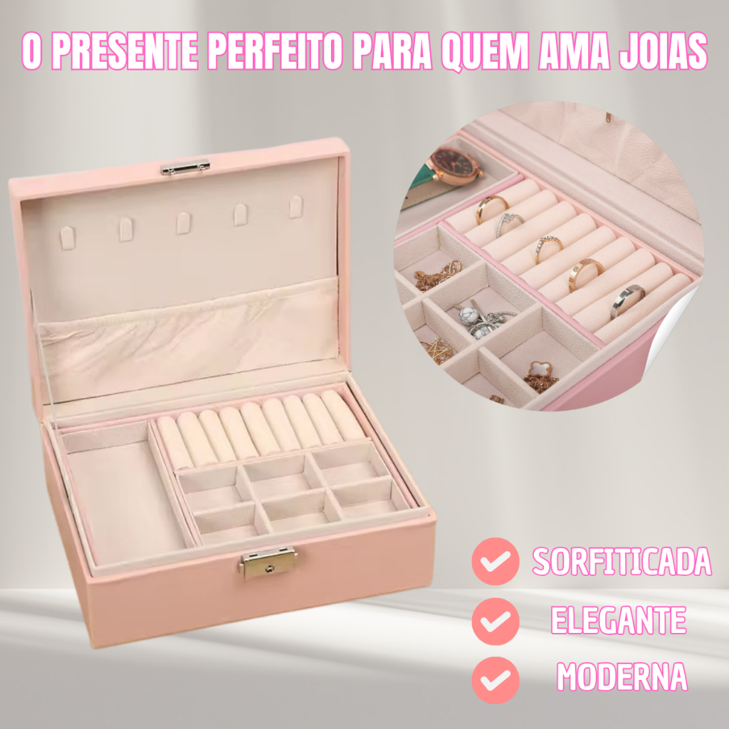 Porta Joias Grande Veludo Rosa Feminino Portas Bijuterias Ideal Para Presente Namorada Mulher
