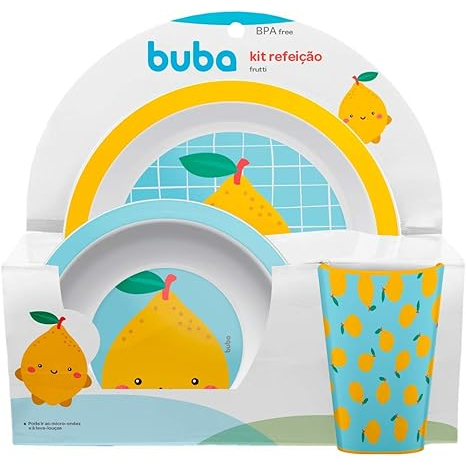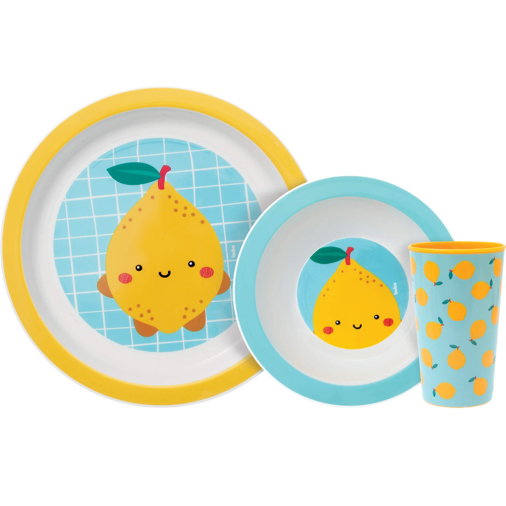 Kit Refeição Infantil Pratinho Tijela e Copo BUBA Limão