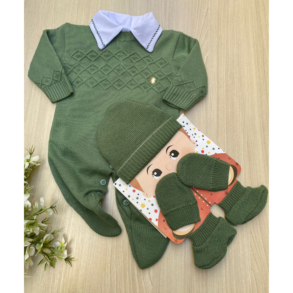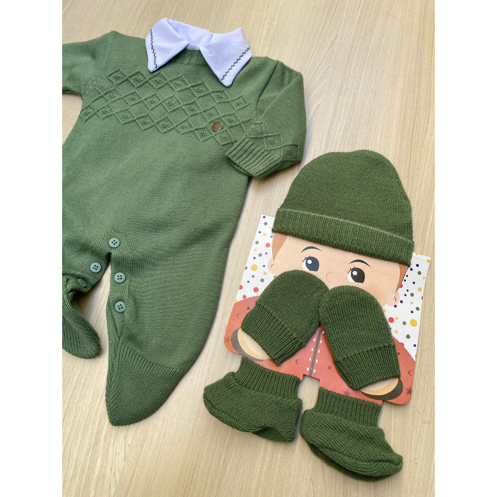 Saida de Maternidade Menino Verde Pistache Charles Tricot 5 Peças