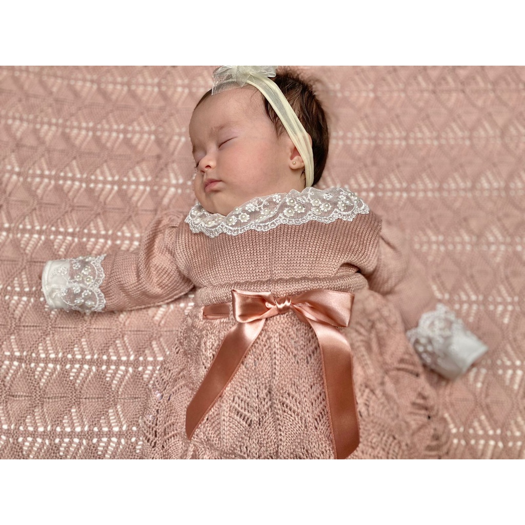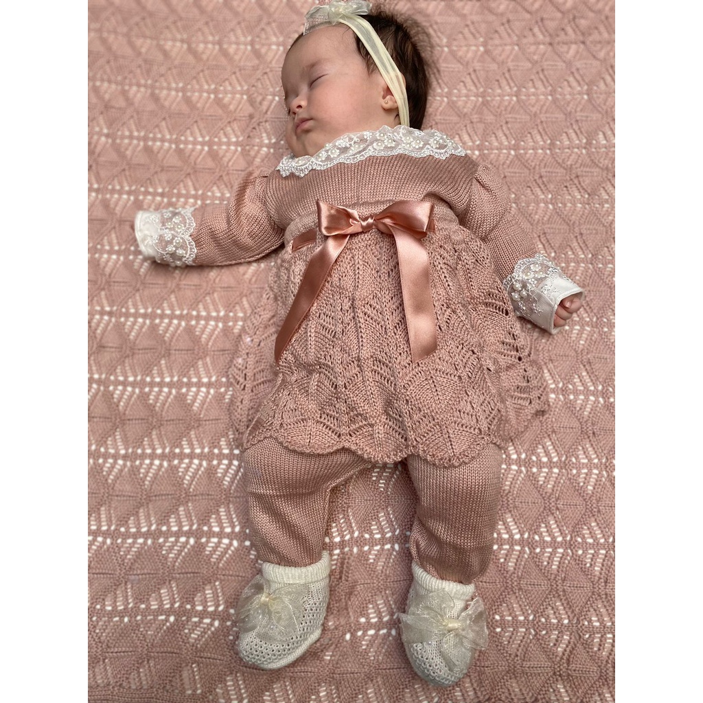 Saída de maternidade de menina em tricot completa 6 peças