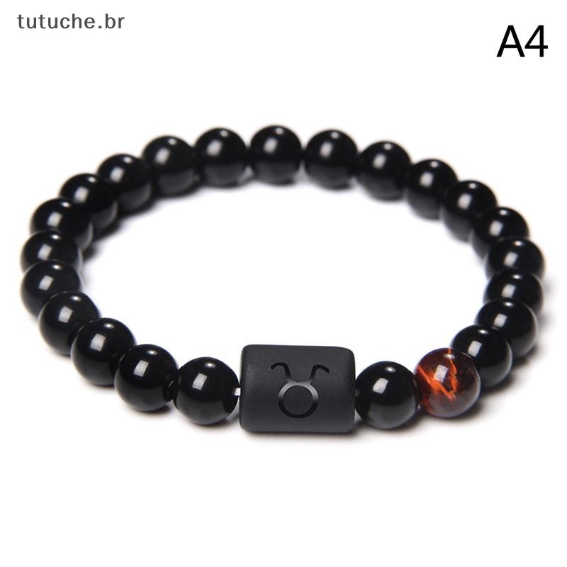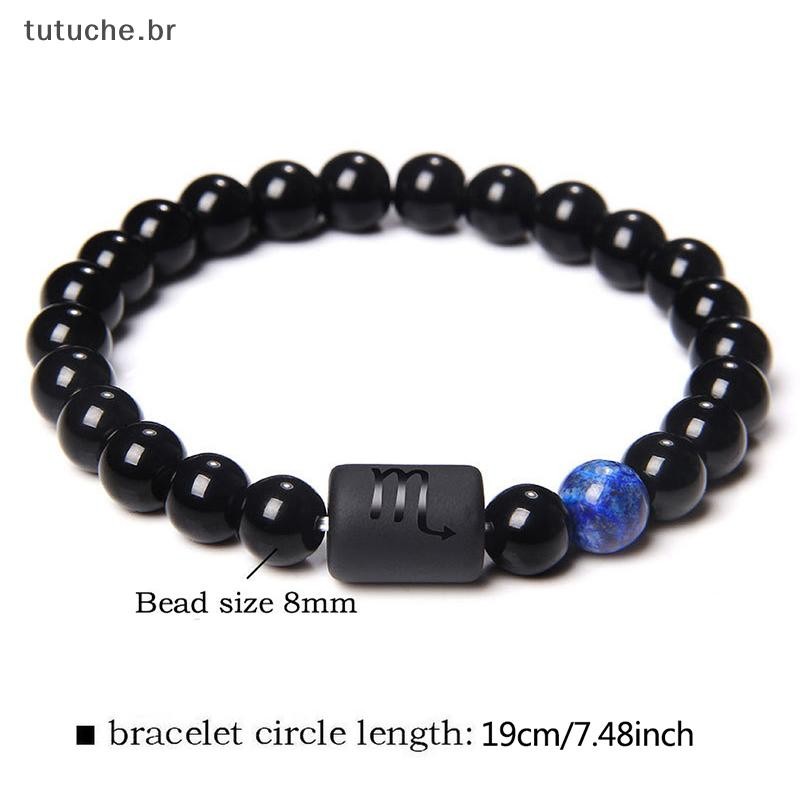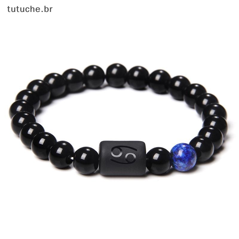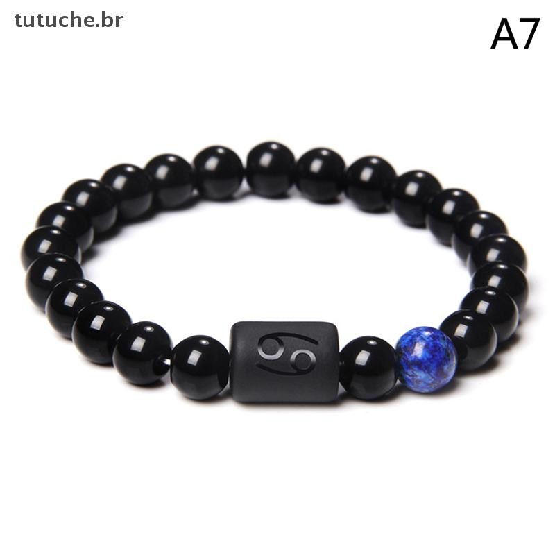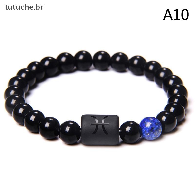 TU 12 Constelações Signos Do Zodíaco Contas Casal Pulseira Natural Preto Ônix Pedra Elástica Charme Para Mulheres Homens
