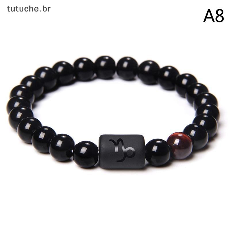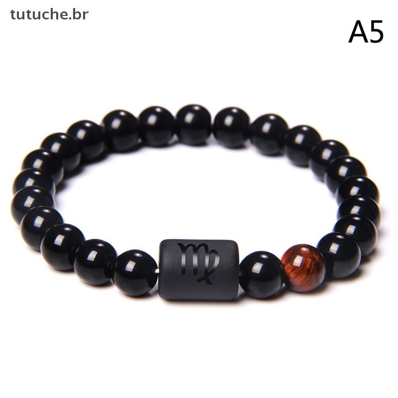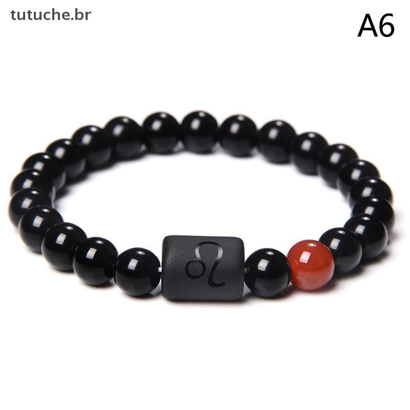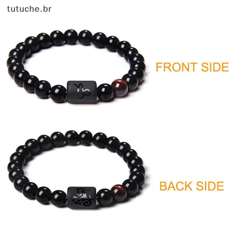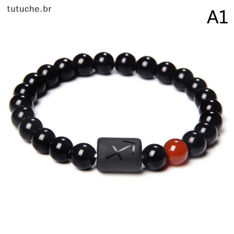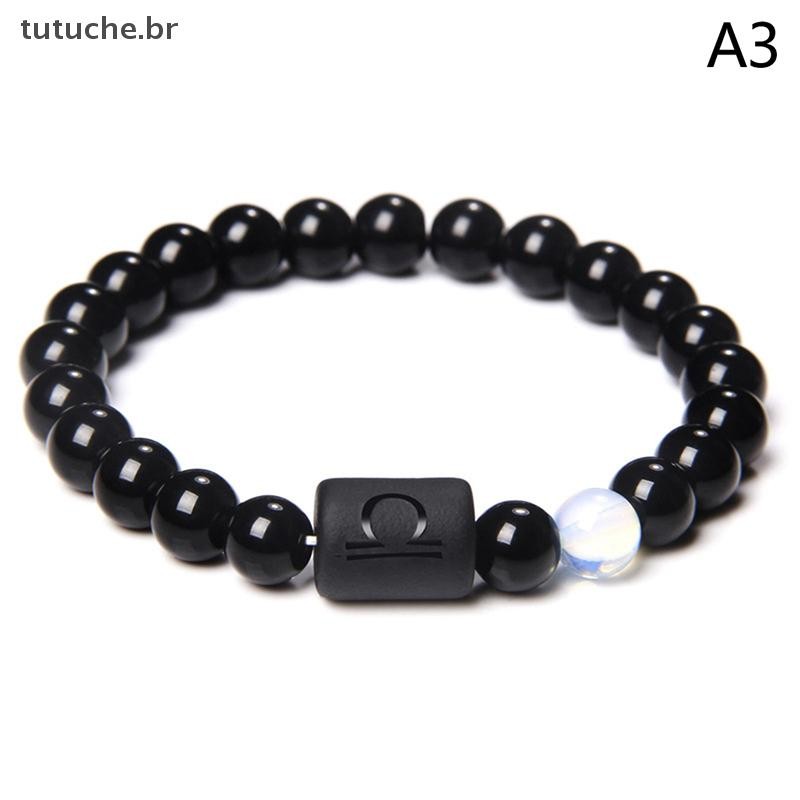 TU 12 Constelações Signos Do Zodíaco Contas Casal Pulseira Natural Preto Ônix Pedra Elástica Charme Para Mulheres Homens